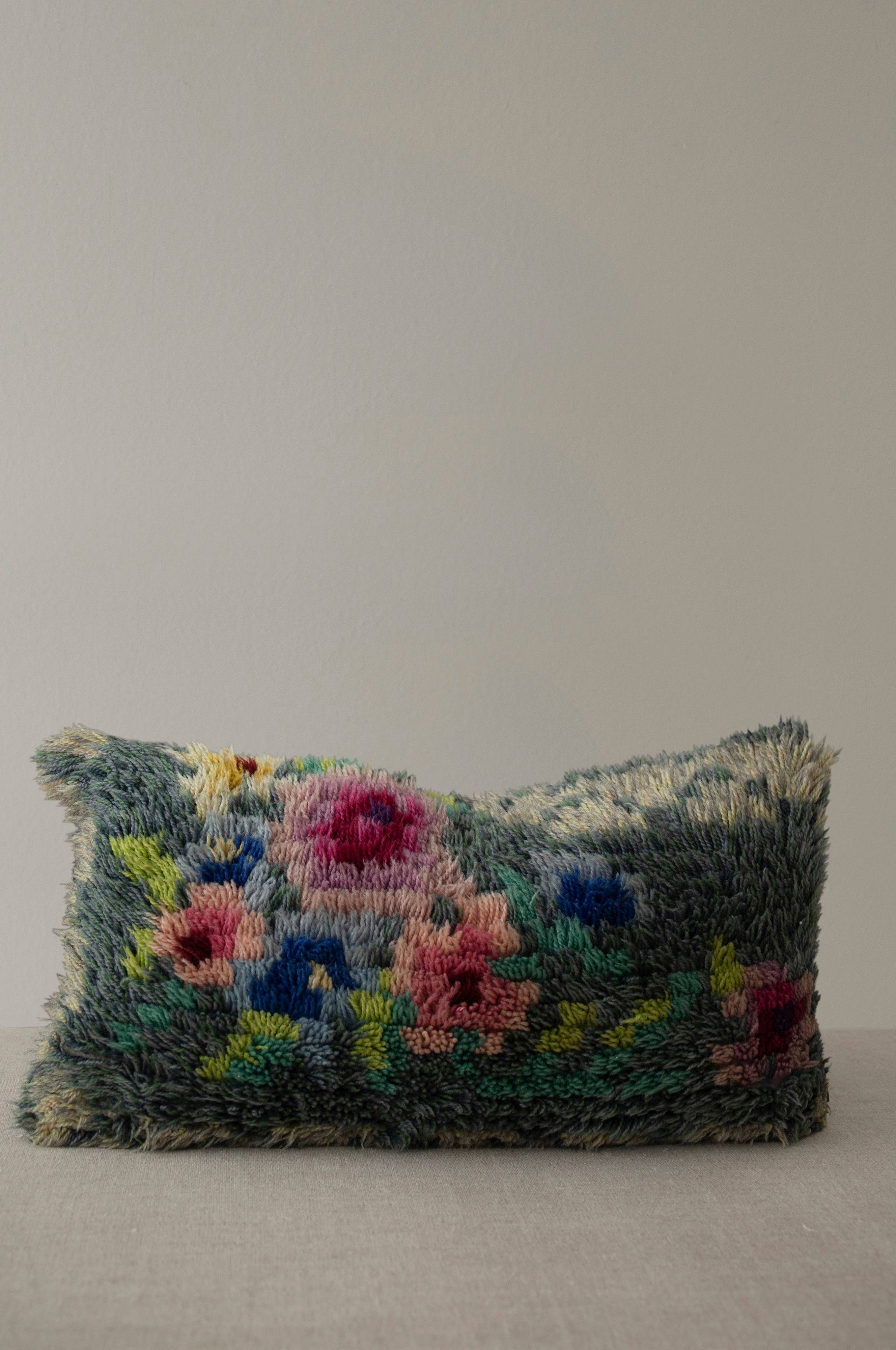 Pute med forside som er skåret av gamle håndvevde ryetepper og gobelenger med bakside av overskuddsstoff. Det er et mye mer bærekraftig valg å gjenbruke materialer istedenfor å bruke nye, og er et steg mot å redusere mengden tekstilavfall. Mønstrete forside og ensfarget fløyelsbakside. Putene er ulike i mønster og fargenyanse, og kan ha små skjønnhetsfeil. Putene sys lokalt i Sverige. Selges inkludert velfylt innerpute av andefjær som er Oeko-Tex® sertifisert. Renses Størrelse: 30x50 cm