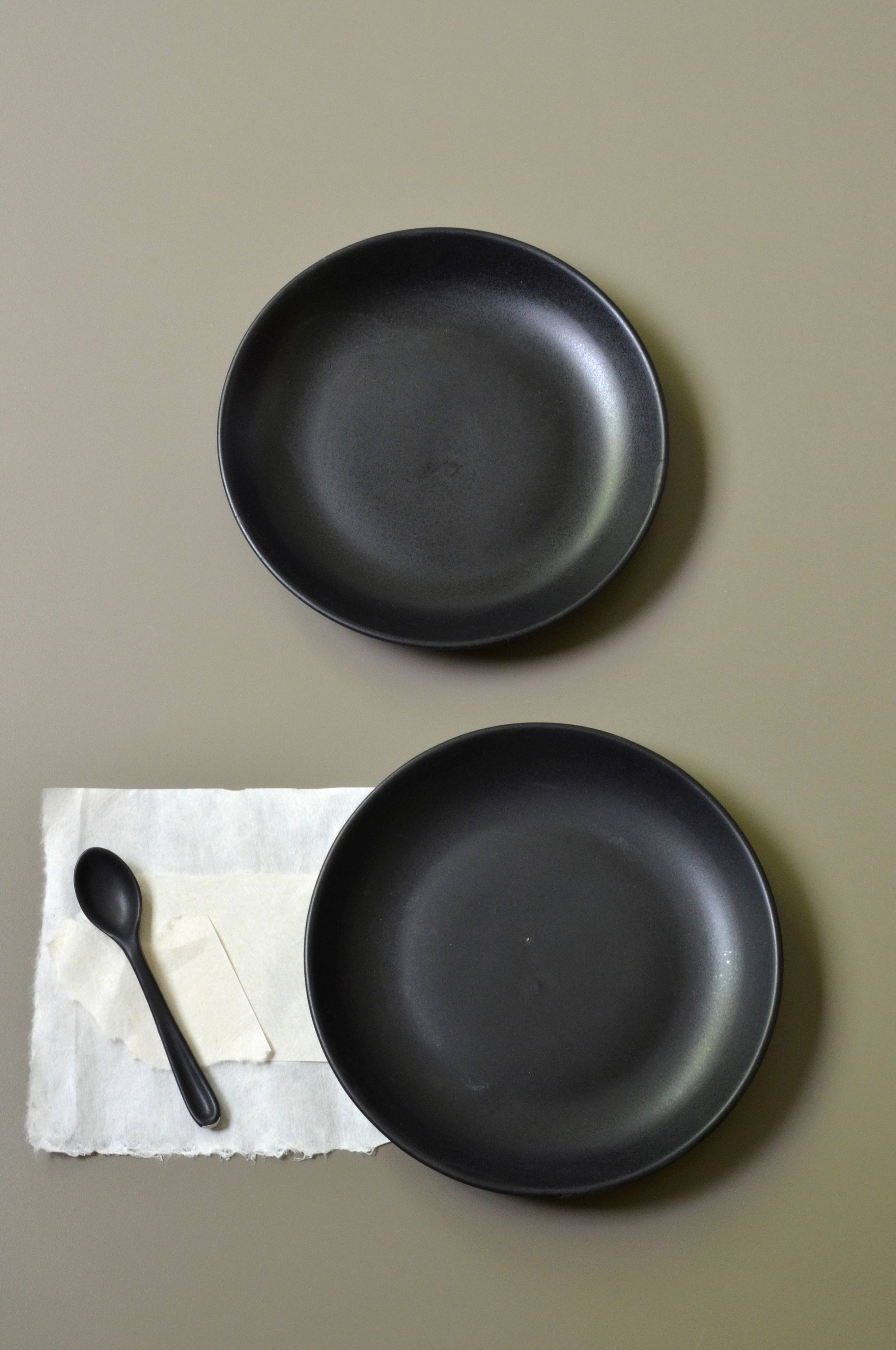 Liten tallerken i keramikk som er støpt for hånd. Tallerkenen har 2,5 cm høye kanter, noe som gjør at den også fungerer som en grunn skål. Den har matt glasur, og størrelsen passer perfekt til brødskiven, til forretter og også til å ha framme for å legge nøkler, smykker etc på. Mimous keramikk PURE er en serie servisedeler produsert i Lampang nord i Thailand. Området er kjent for sin naturlig fine leire med høy kaolininnhold, noe som gjør keramikken veldig solid. Hver del støpes i håndlagde former, og glaseres deretter i noen av Mimous glasurer. PURE-serviset lager ikke mye lyd, og har en utstråling som man ikke blir lei av. Det kjennetegnes av de nette proporsjonene som blir solide og støtsikre på grunn av den fine leiren og den harde glasuren. Den matte glasuren kan være sensitiv for hard behandling. Unngår man harde kutt med kniver eller å bruke elvisp i skålene, eldes serviset på vakkert vis. Tåler mikrobølgeovn og maskinvask. Størrelse 22 cm