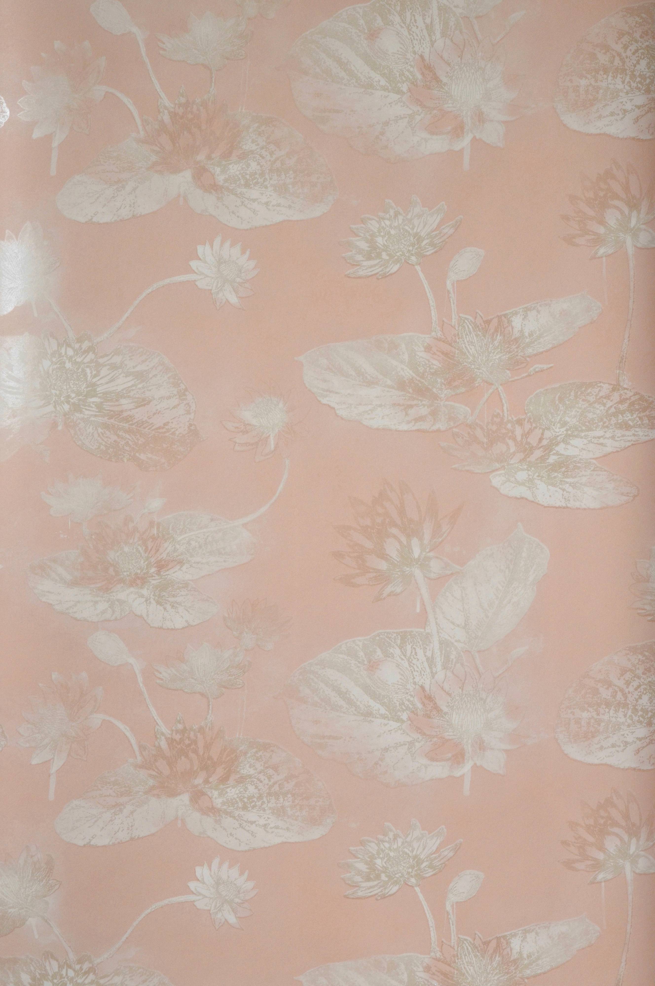 Tapetprøve til tapet Lotus Lake, farge Aprikosrosa.Målet på denne prøven er ca. 210 x 297 mm (tilsvarer et A4-ark).