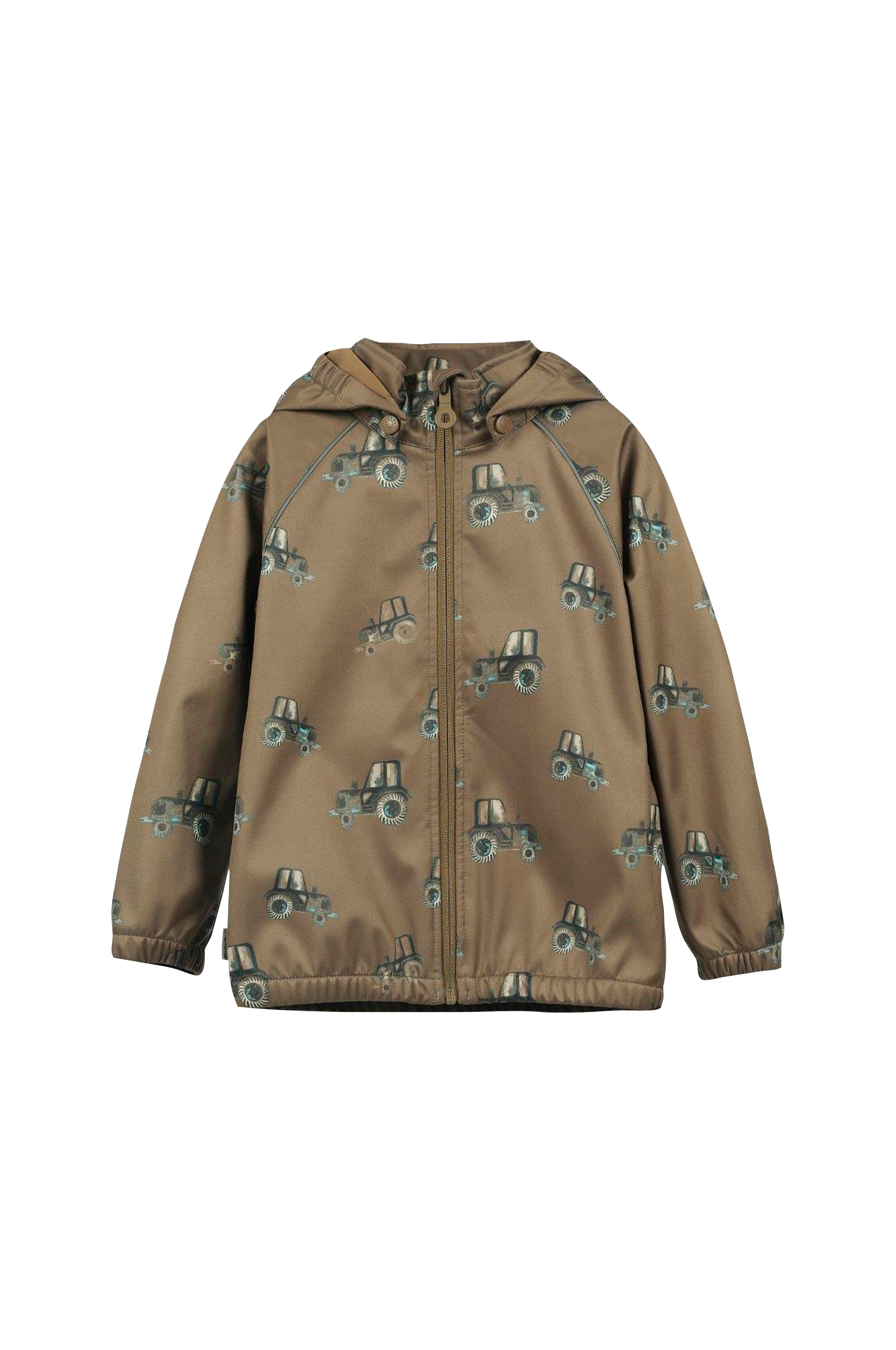 Jakke i mykt, smidig softshellmateriale med trykt mønster. Jakken er vanntett, vannsøyle 8000 mm, pusteevne på 3000 g/m2/24t. Avtagbar hette med strikk foran. YKK-glidelås og to lommer. Strikk i ermekantene og i midjen bak. Refleksdetaljer foran og bak.