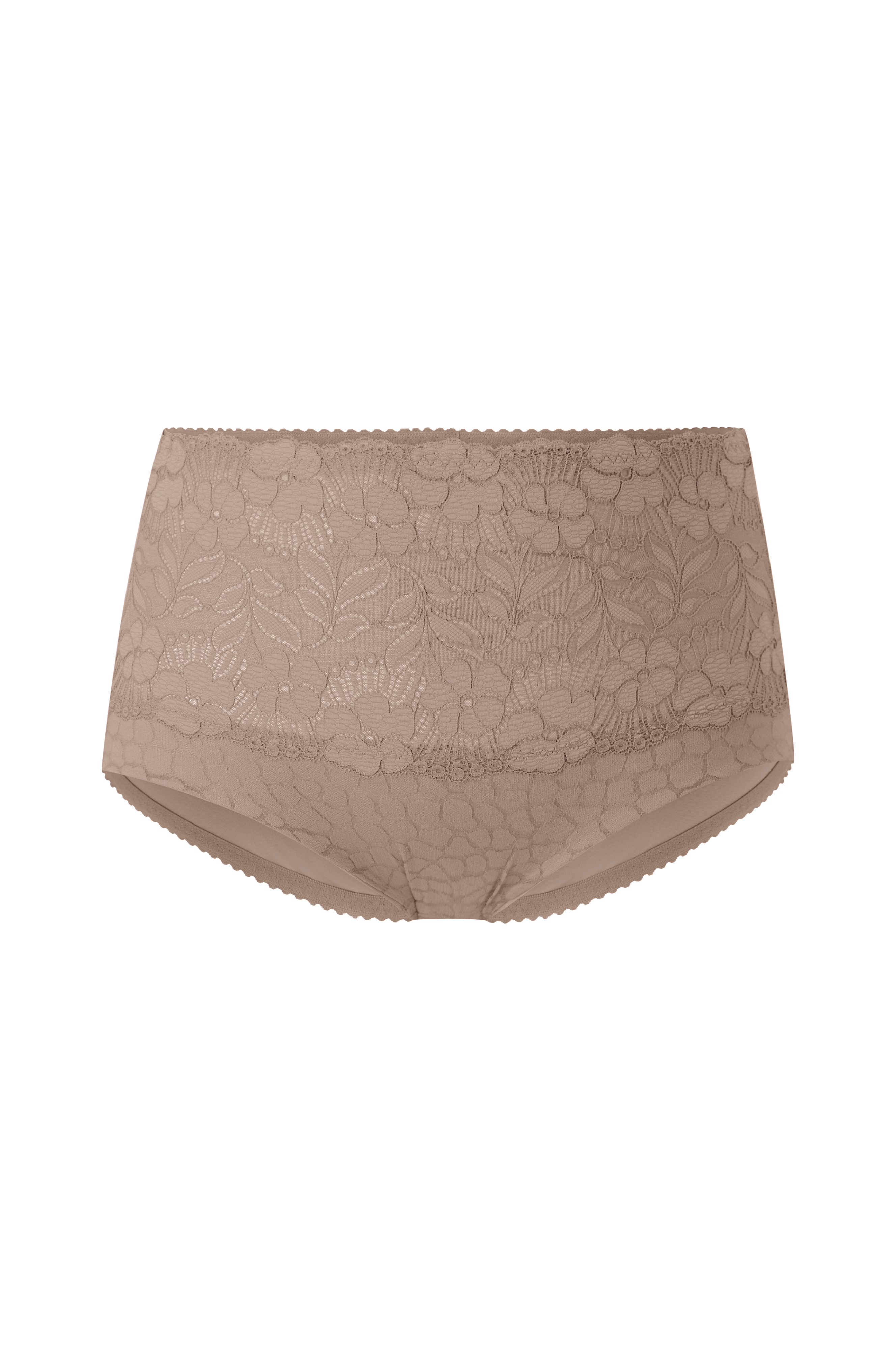 Maxitruse med forstykke i blomstermønstret blonde og dyremønstret jacquard. Forsterket forstykke som er sydd med dobbeltsøm med meshfôr for å gi økt komfort og en lett formende effekt på magen. Behagelig strikk i midje og benåpninger. Bakside i glatt, matt stretchmateriale. Bomullsfôret skritt.