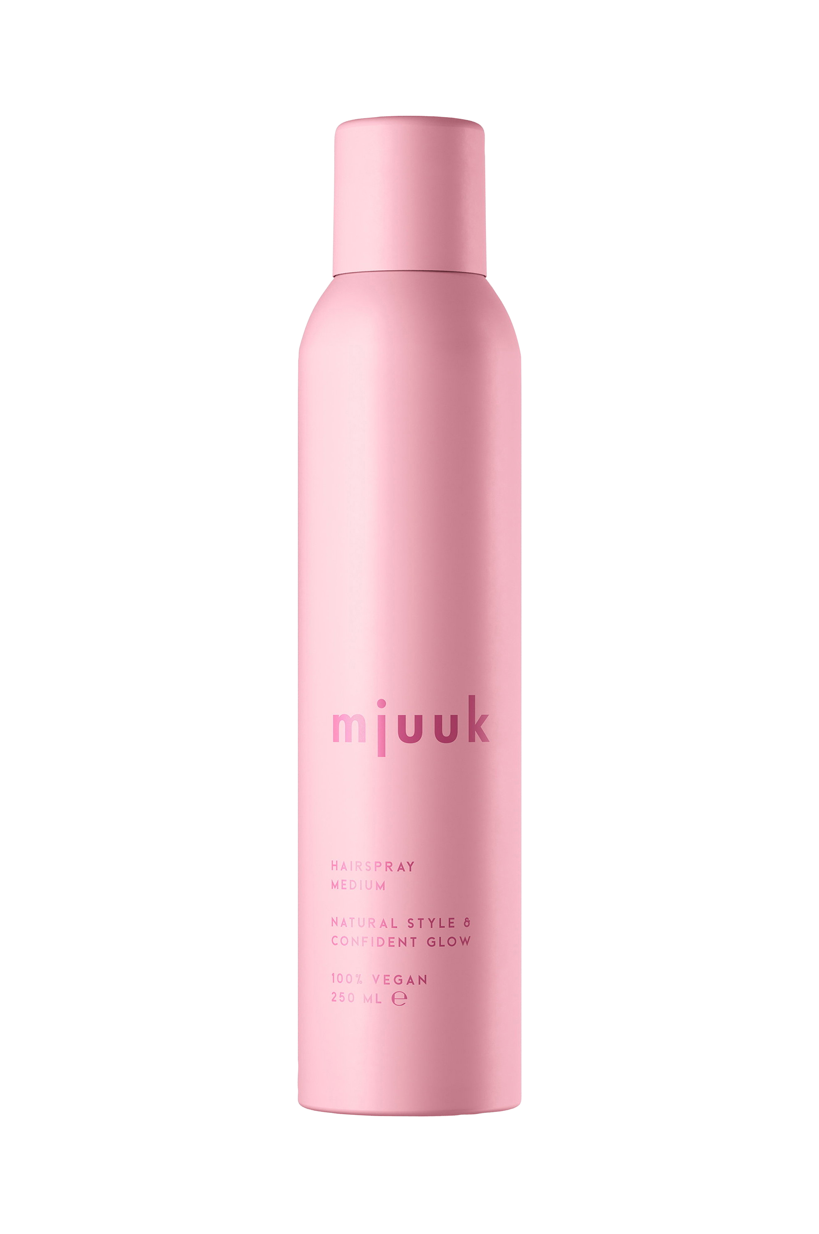 Mjuuk Hairspray Medium Hairspray gir frisyren din et naturlig og fleksibelt hold uten at den føles knasende. Produktet tørker raskt og holder frisyren på plass hele dagen. Formelen er 100 % vegansk, og emballasjen er resirkulerbar.