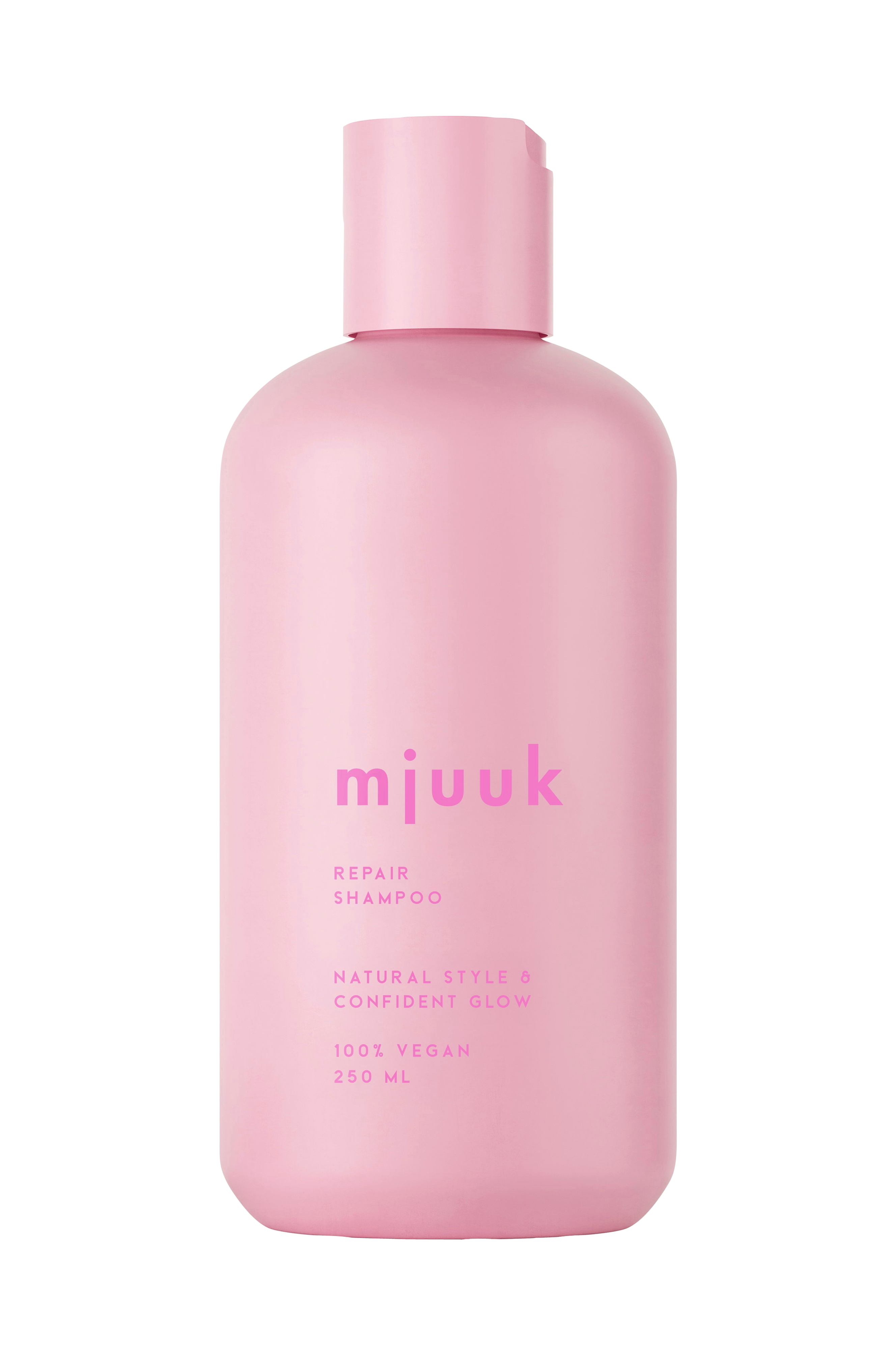 Mjuuk Repair-sjampo hjelper til med å reparere og styrke skadet hår som har vært utsatt for kjemisk behandling, som farging eller varmestyling. Formelen renser skånsomt og etterlater håret mykt, håndterbart og vakkert glansfullt.
