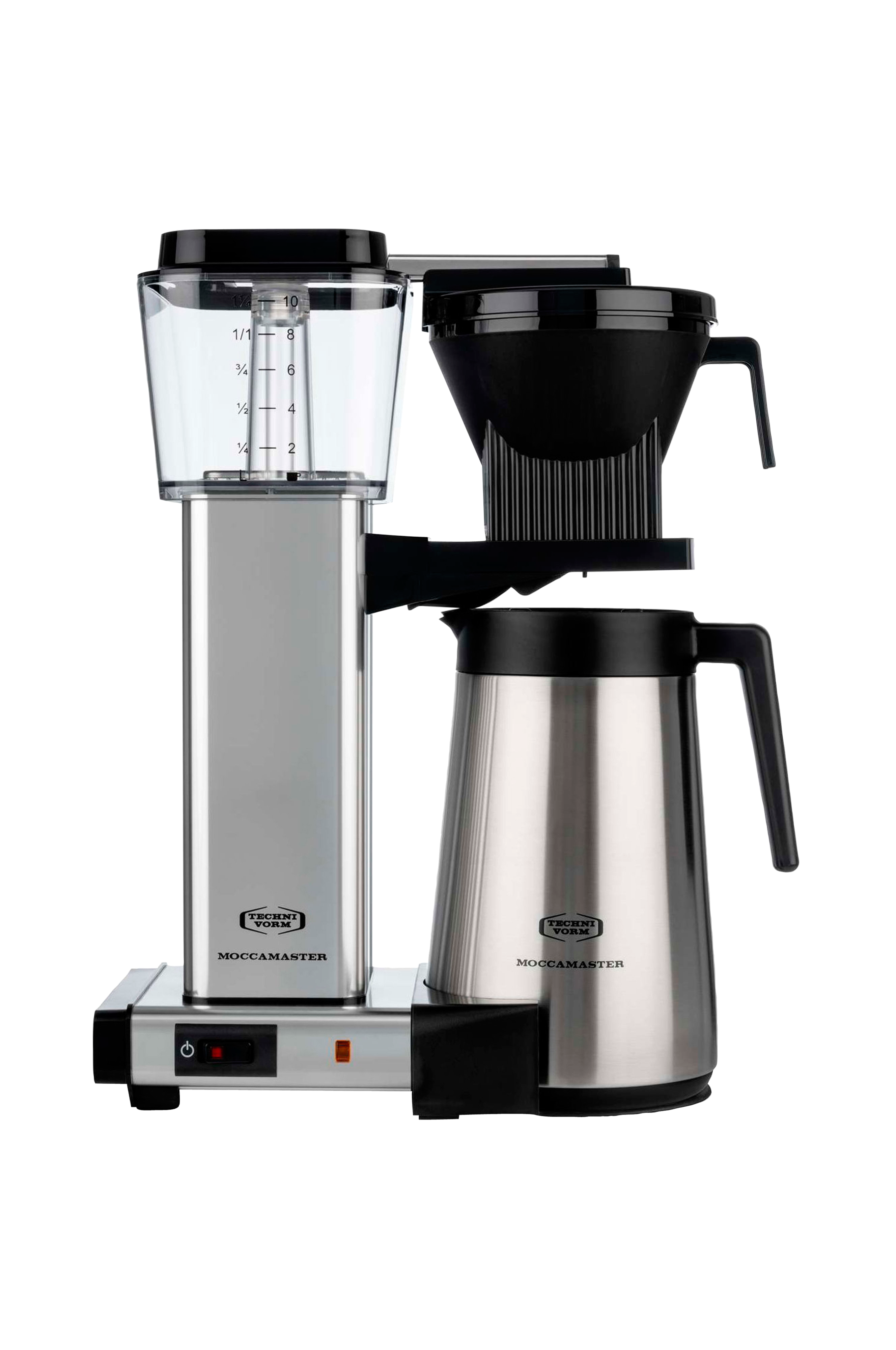 Moccamaster Automatic Thermo brygger kaffen direkte i den medfølgende termosflasken, hvor den holder perfekt serveringstemperatur.