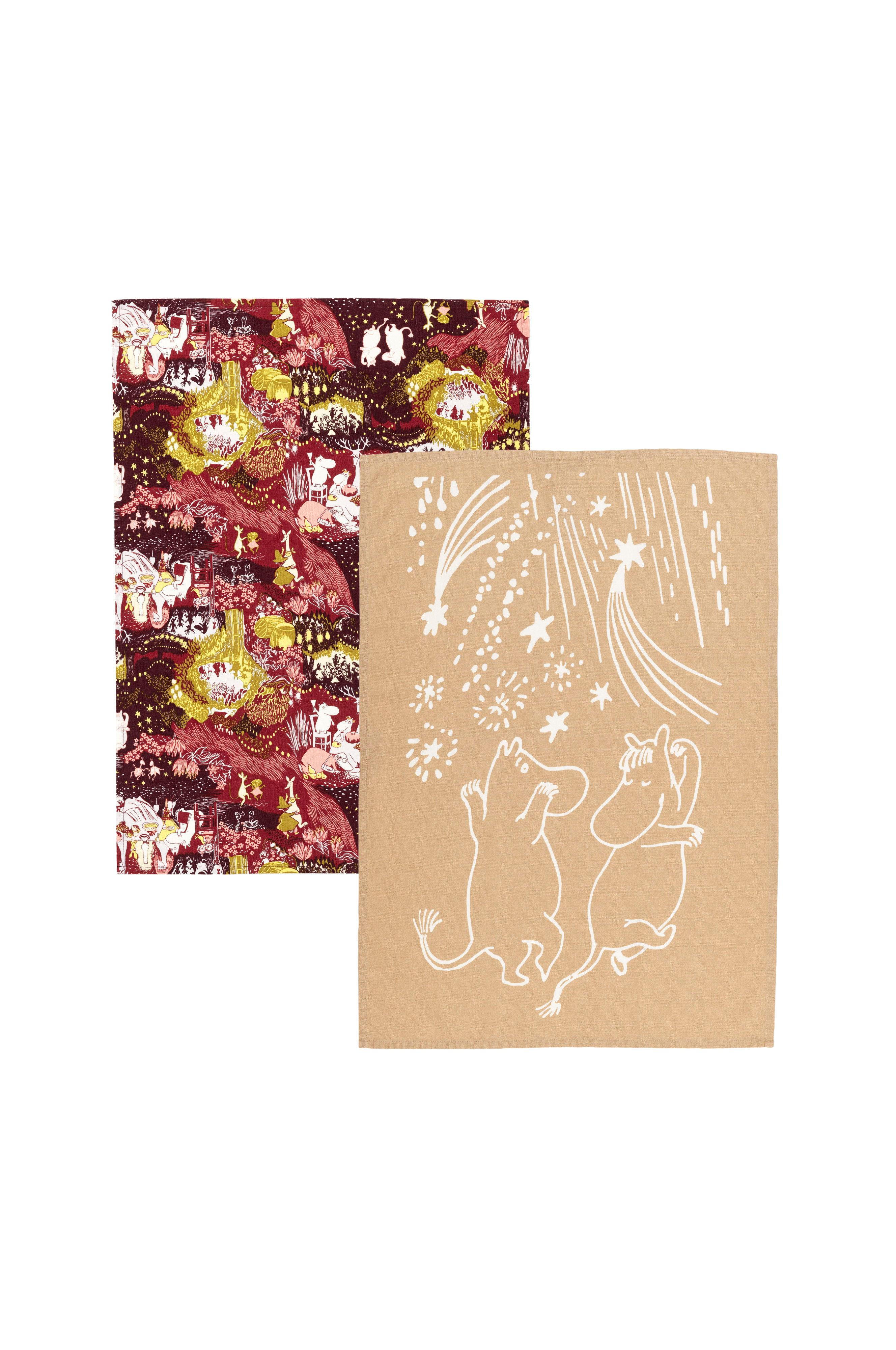Tørk hendene med myke og koselige Mummihåndklær! Moomin 80 Festlige Stunder- kolleksjonen hyller fellesskap og vennskap. La oss feire fellesskapet ogvise takknemlighet for vennene våre, uansett hvor de er! Moomin Arabia håndklærsett, 50x70, Festlige Stunder, GOTS