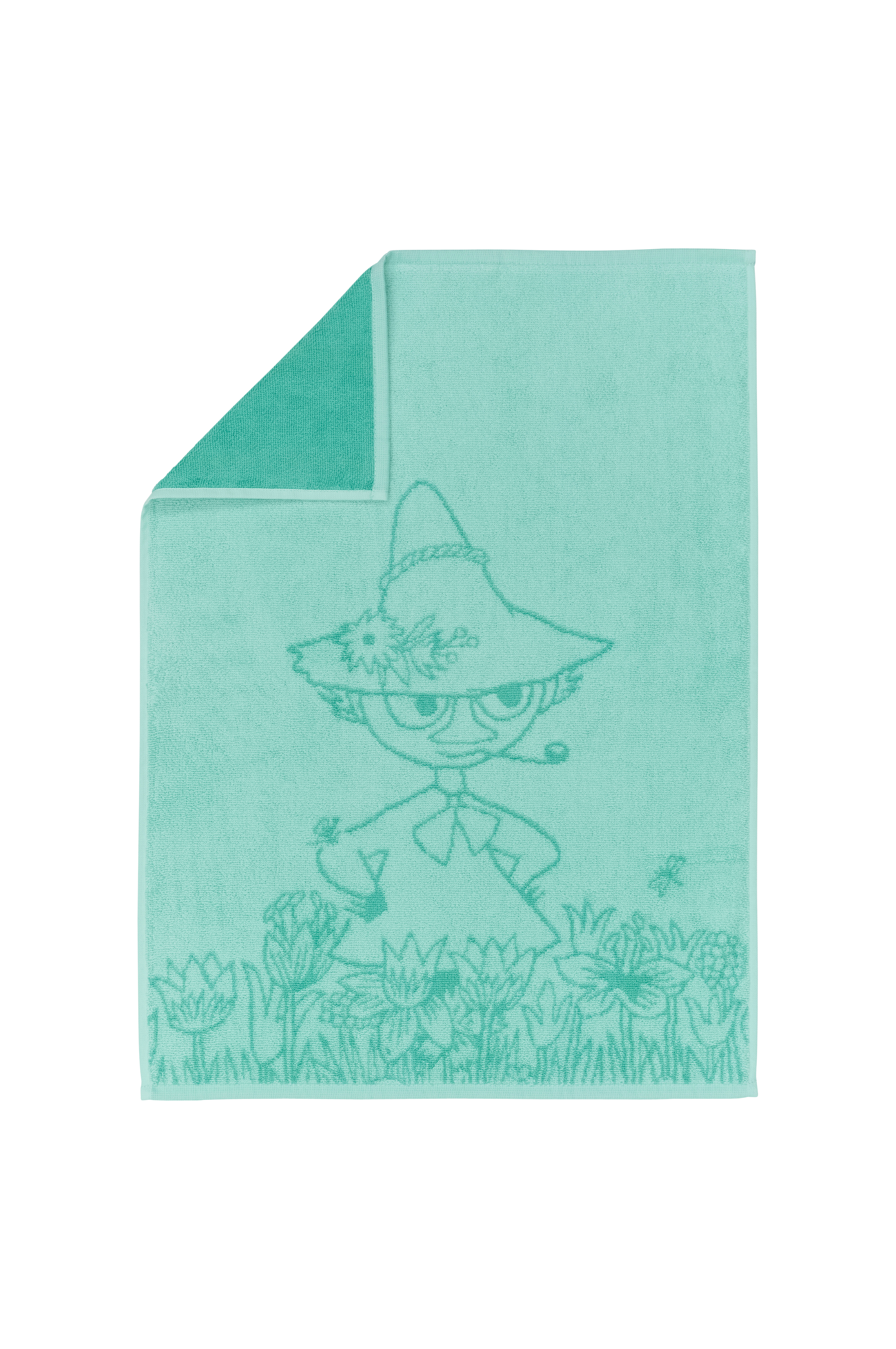 Et mykt og koselig Mummi håndkle. Mummitrollet får en gyllen hale og blir berømt. Snusmumrikken advarer ham om ulempene som kjendis. Snusmumrikken synes synd på vennen sin, Mummitrollet, som havner i offentligheten for halen hans. Til slutt blir også Mummitrollet lei av å være kjendis og klipper av de gylne halehårene. Økologisk bomull. Moomin Arabia kjøkkenhåndkle 50 x 70 cm Snusmumriken