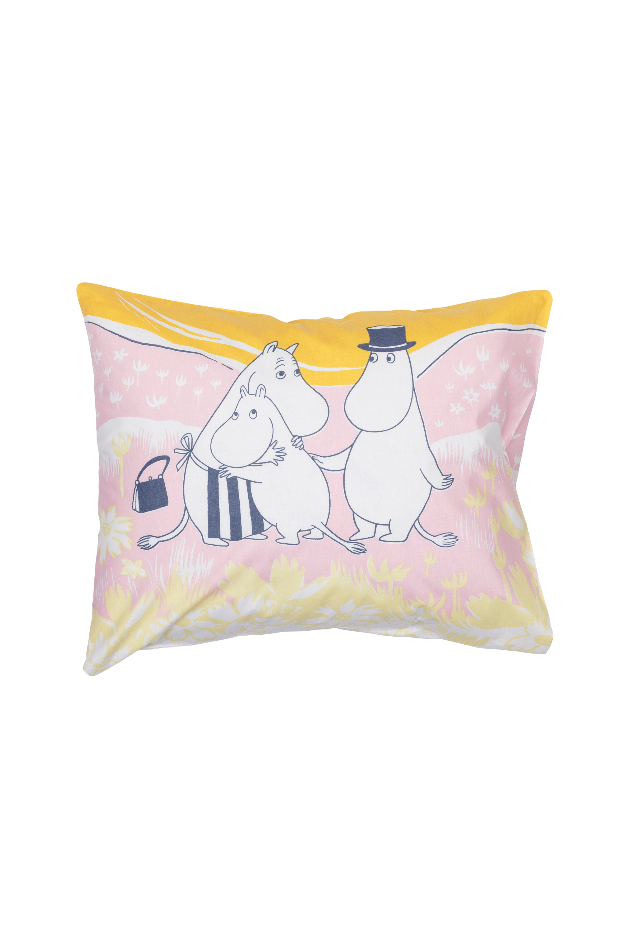 Drøm søtt! Soveromstekstilenes farger og muntre trykk gjør at soverommet føles som en klem fra en du er glad i. Moomin Arabia putetrekk 50 x 60, Familietid GOTS