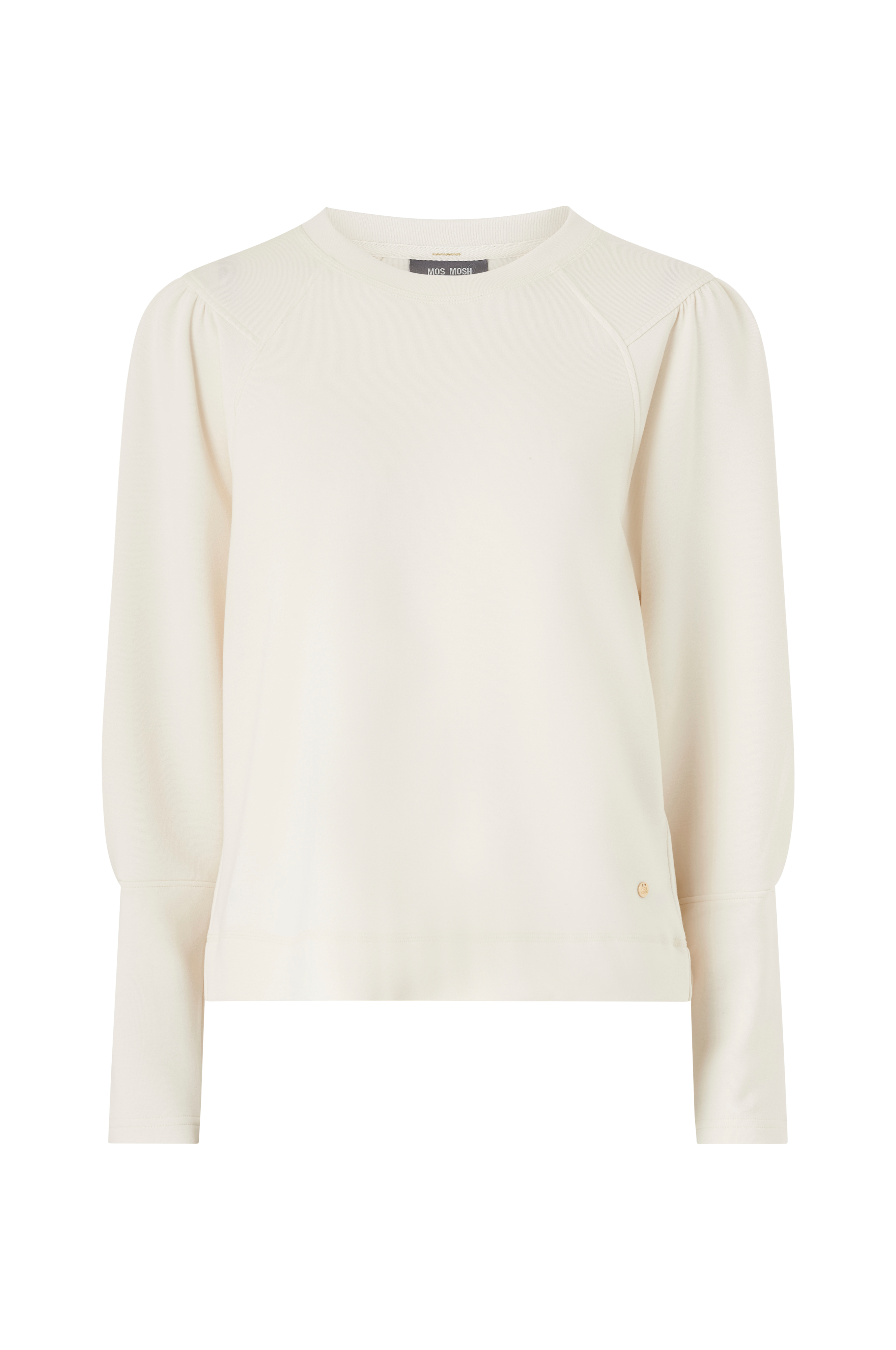 • Rett modell• Rund hals• Langt, bredt erme med rysje ved skuldrene og bred mansjett