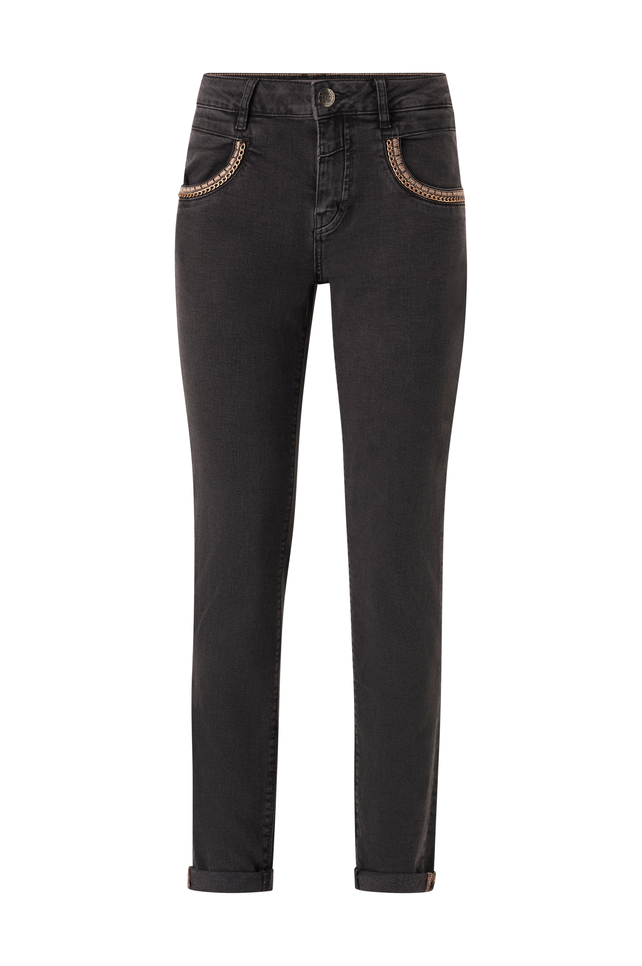 • Tynn modell• Broderi på framlommene• Lynlås• Smale benender