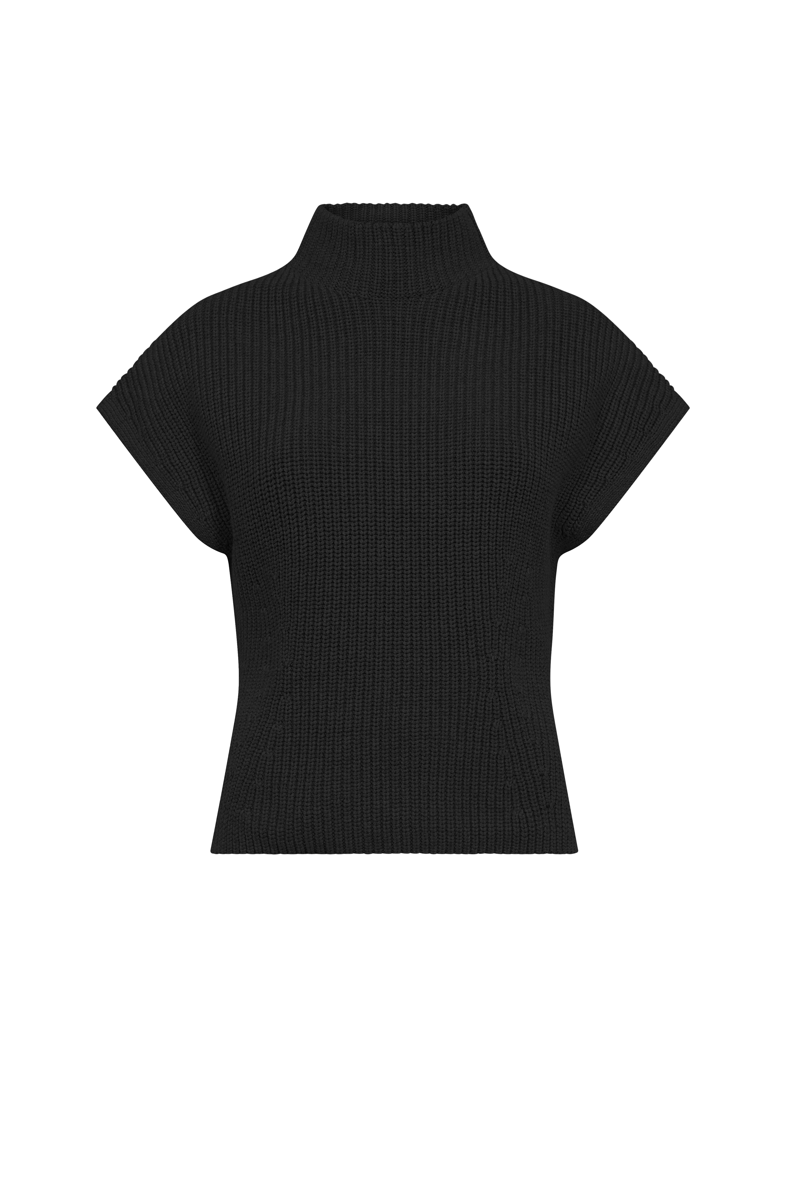 • Strikket vest med ribbet høy krage• Skjær nede i sidene