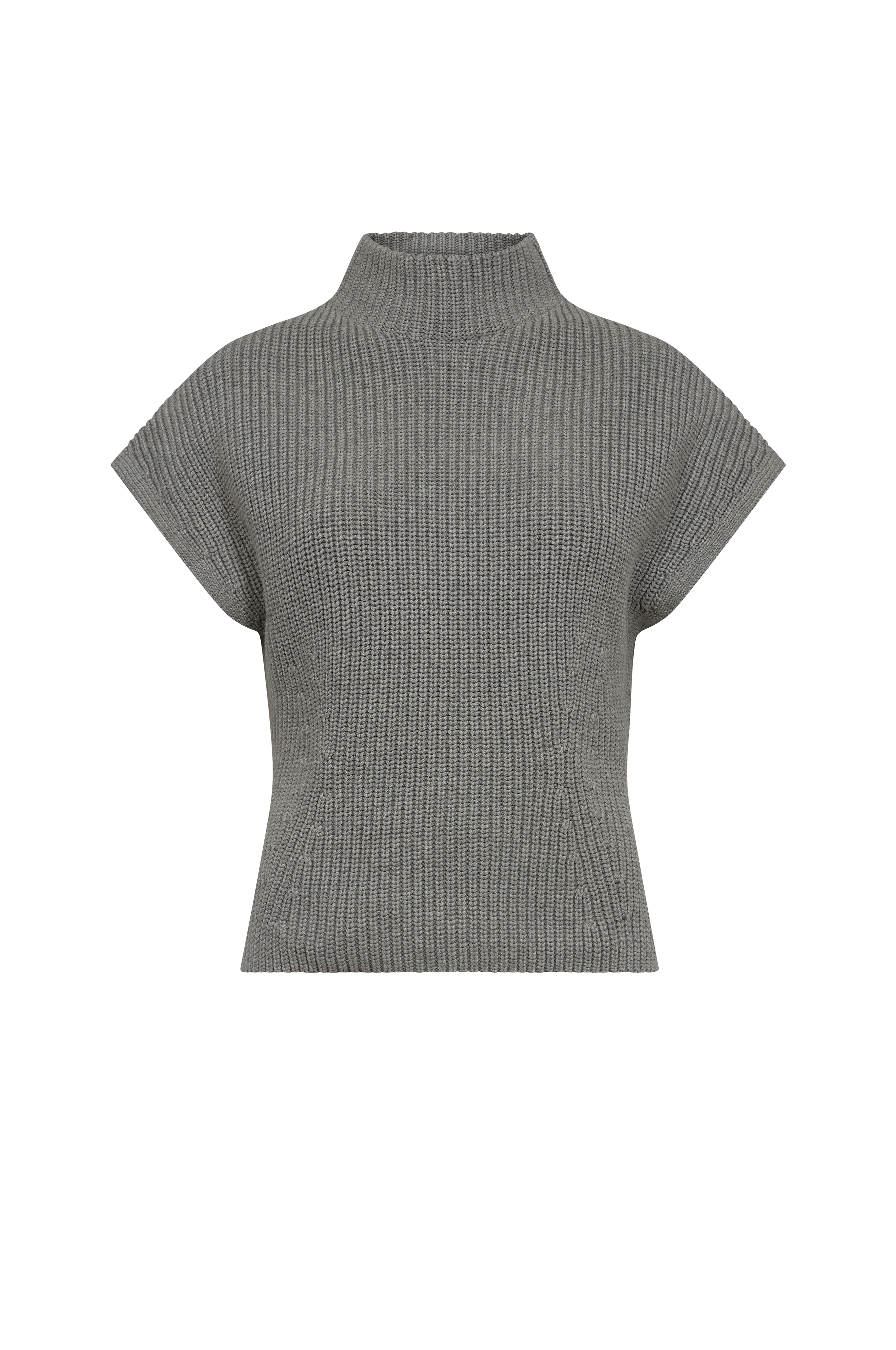 • Strikket vest med ribbet høy krage• Skjær nede i sidene