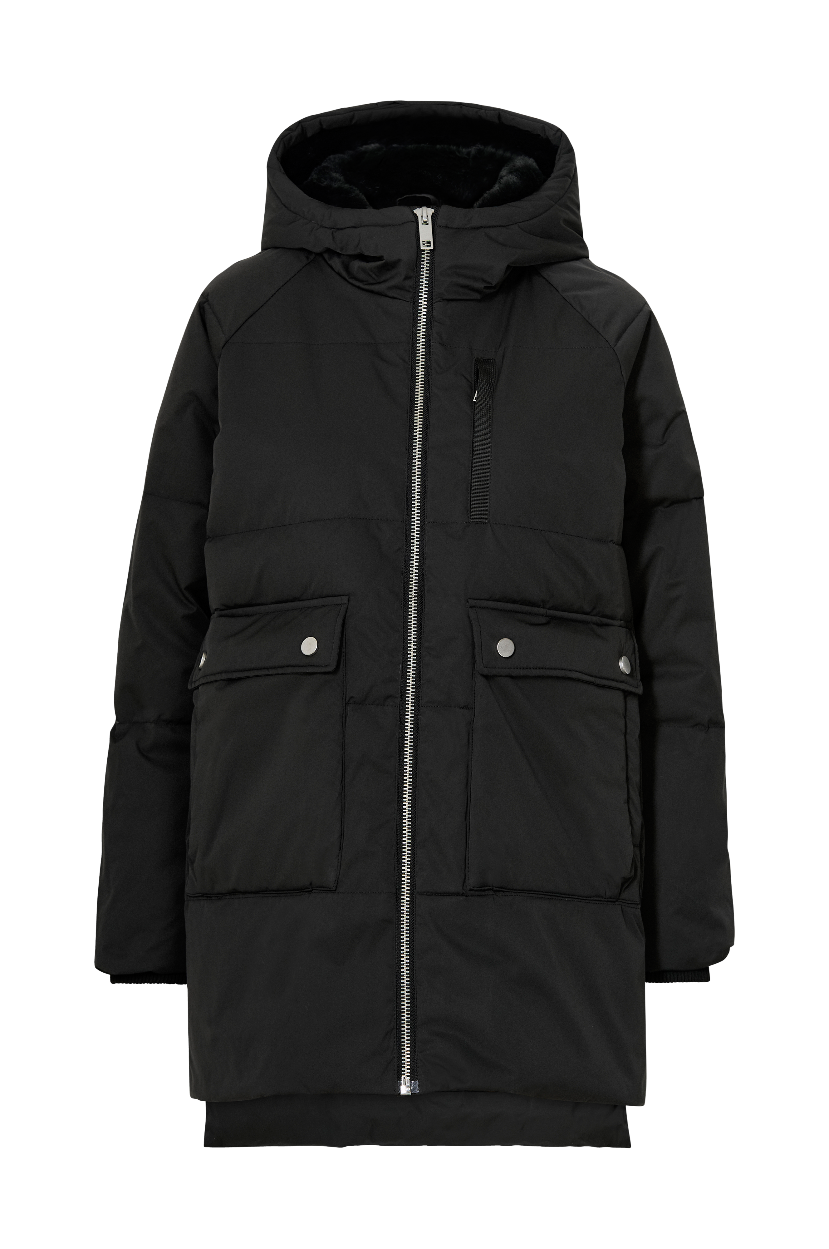 • Vannavstøtende yttermateriale• Tre lommer foran• Fast hette med foring i kunstig skinn• Ribbet mansjett i ermeslutten• Glidelås nede i sidene for justerbar vidde• Lengde: 77 cm i størrelse S