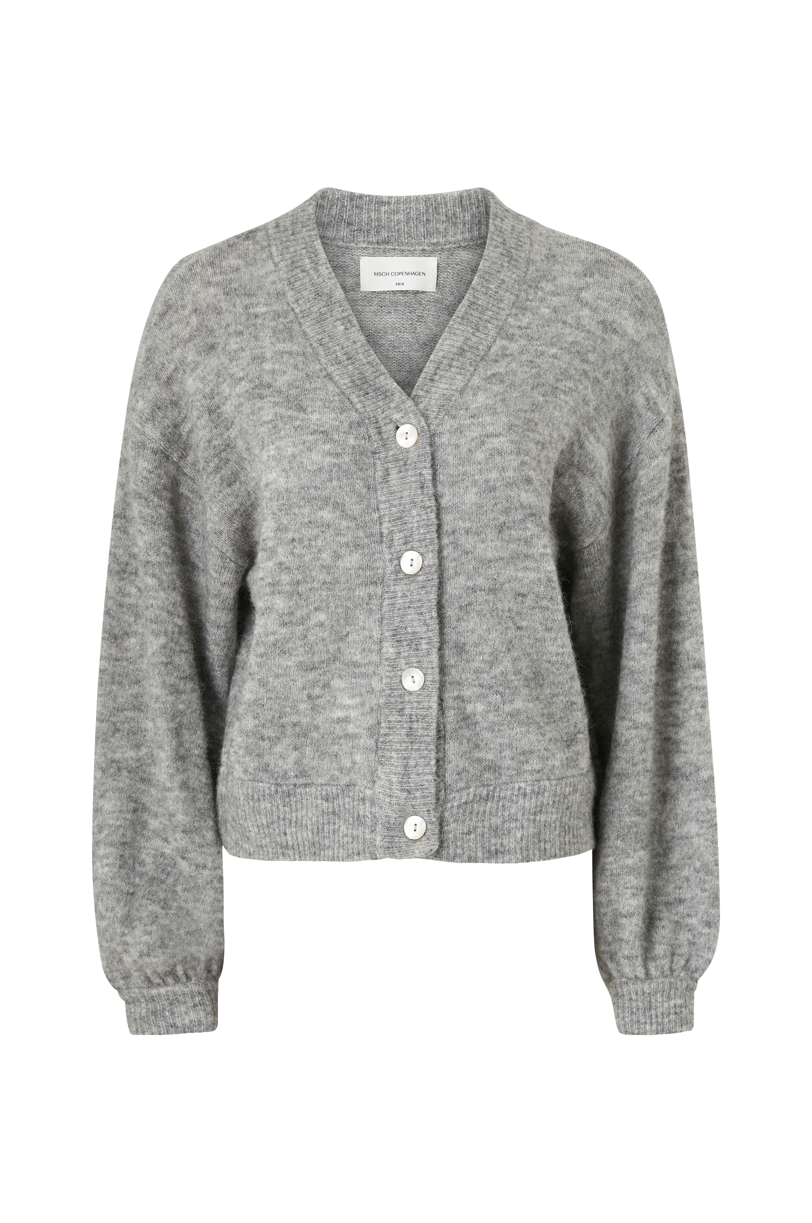 • Finstrikket kardigan med lange armer og utringet skulder• V-formet, ribbestrikket hals• Åpning foran med dekorative knapper hele veien ned• Ribbestrikk på bunnen og i ermeslutten•