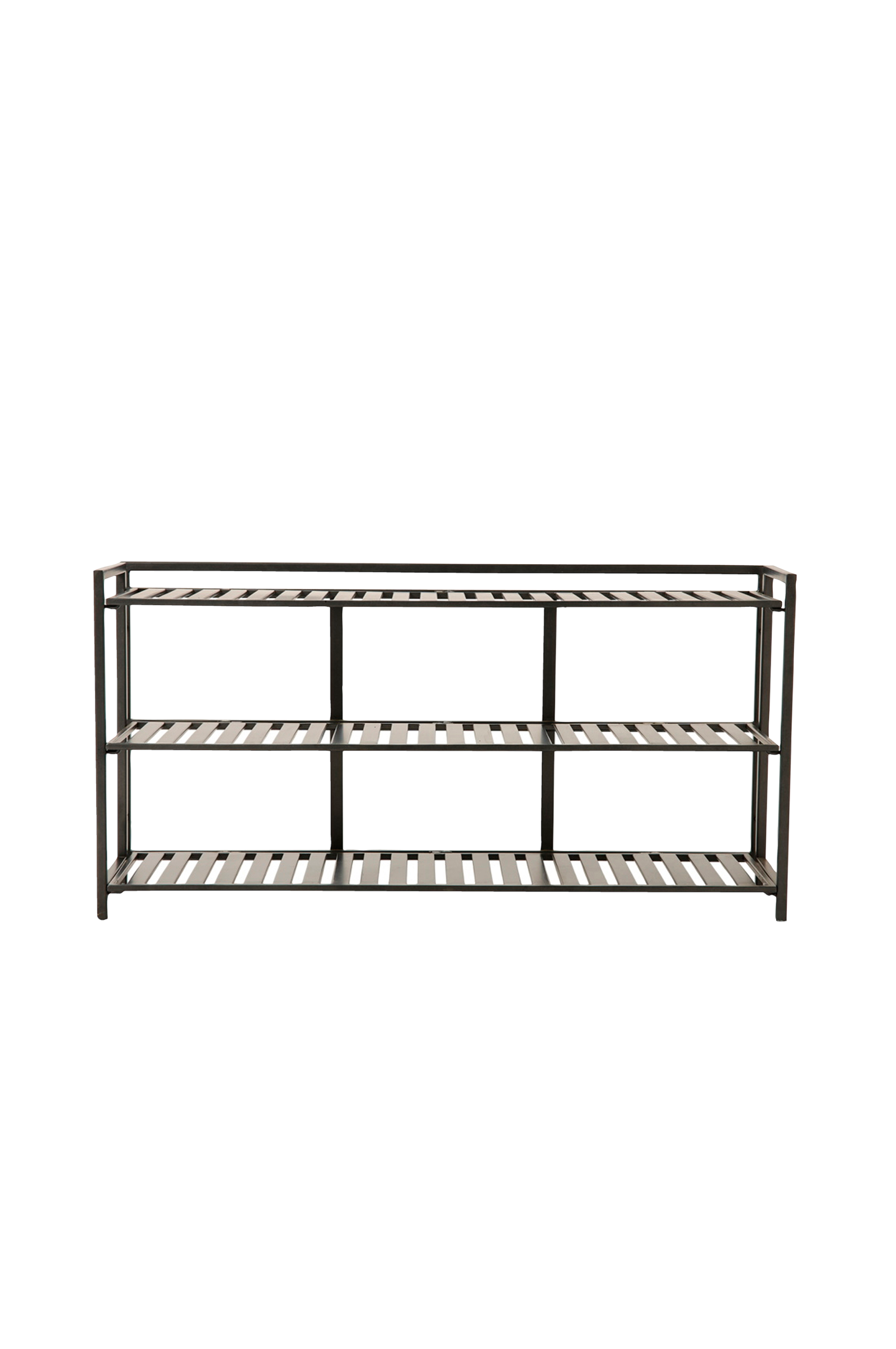 Dette er en smal, multifunksjonell hylle som ikke tar opp mye plass og er ideell for små hjem. Med tre brede hyller er enheten kompakt og funksjonell, og fungerer perfekt som tv-stativ i stuen eller skohylle i entreen.