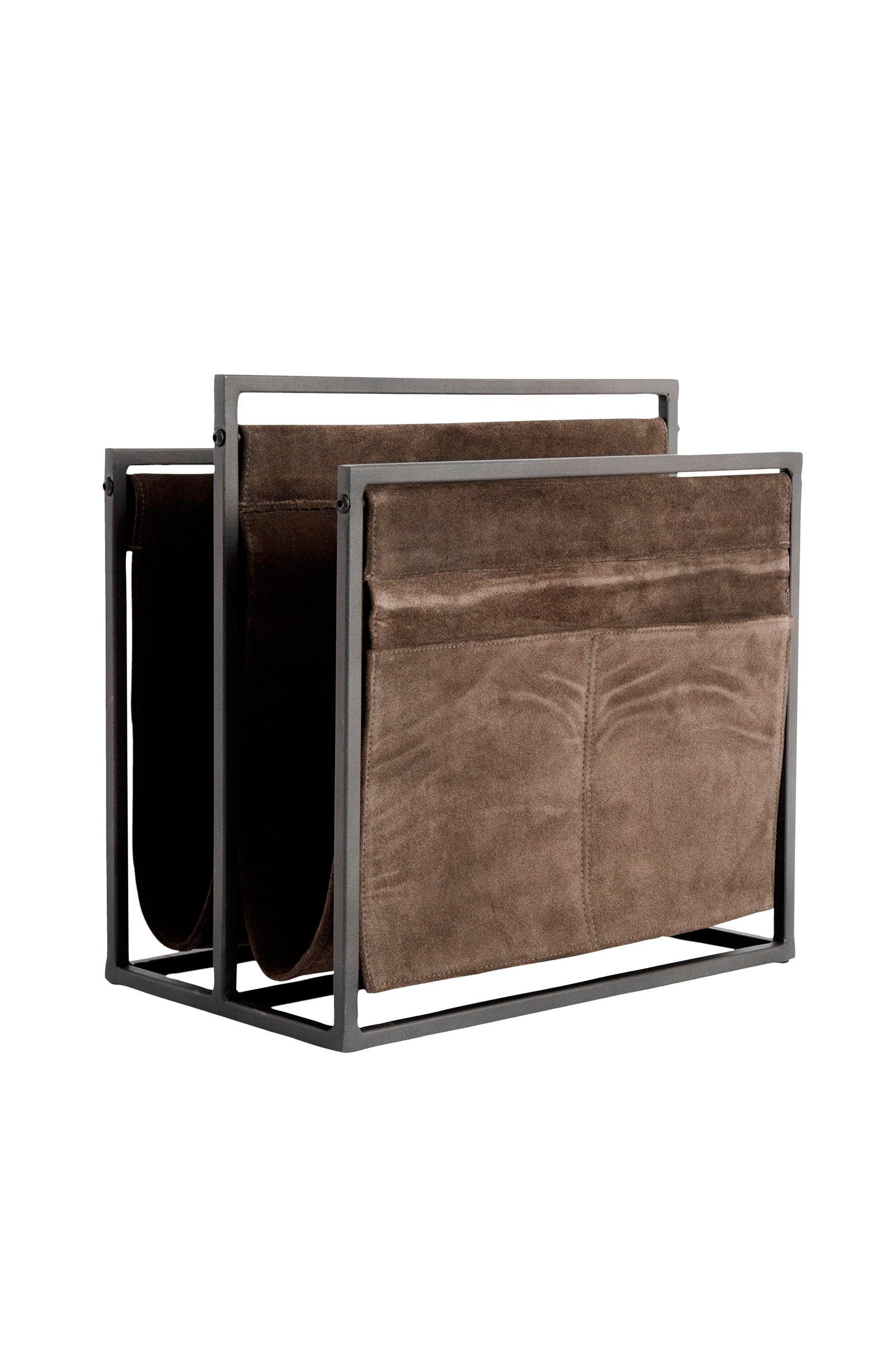 Avisholder i semsket skinn og jern fra muubs. Avisholderen har et stilrent og enkelt design med to avdelinger for aviser, magasiner osv.