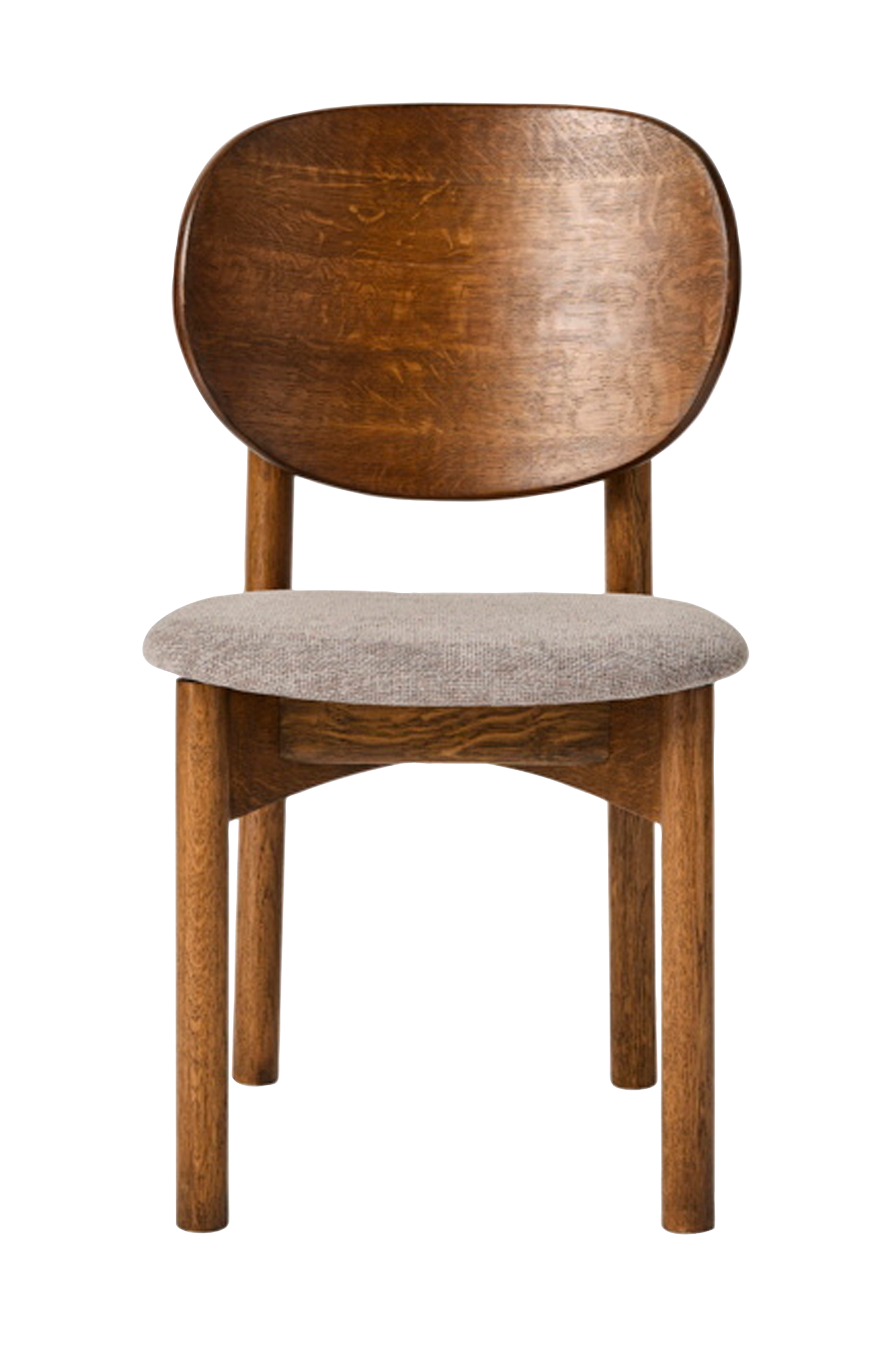 Den tidløse designen gjør oka til et naturlig valg som passer sømløst inn i ethvert miljø. Det avrundede, buede rygglenet gir god komfort og støtte, noe som gjør stolen ideell for lange middager og koselige sammenkomster rundt bordet. Stolen er behandlet med mørk olje, noe som gir den en røkt fargetone og en varm glød som utfyller det grå setet og skaper en harmonisk helhet.