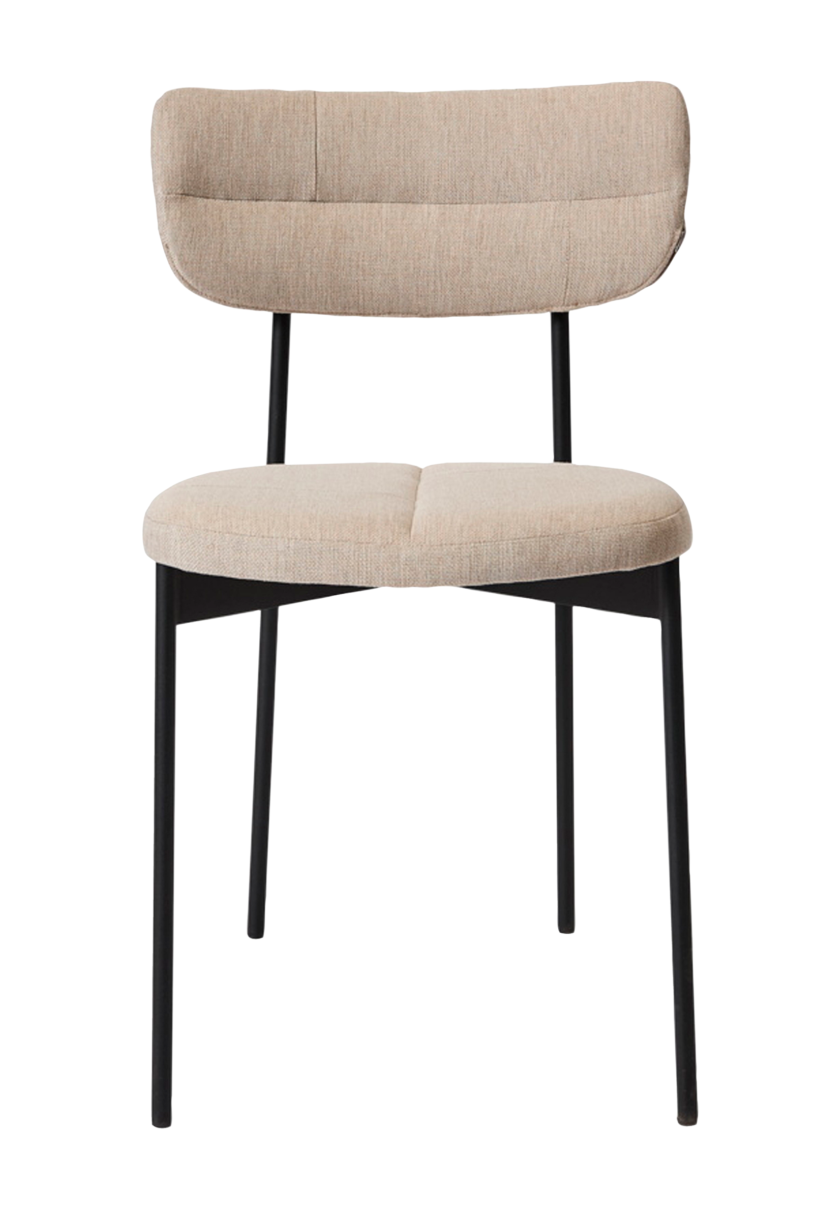 Rammen er laget av svart pulverlakkert metall, mens det organiske rygglenet og det brede setet, laget av polyuretanskum, gir utmerket støtte og høy komfort. Det lyse sandfargede setet og ryggstøtten, som utfyller det mørke understellet, er laget av 100 % polyester, noe som gjør stolen både slitesterk og holdbar.