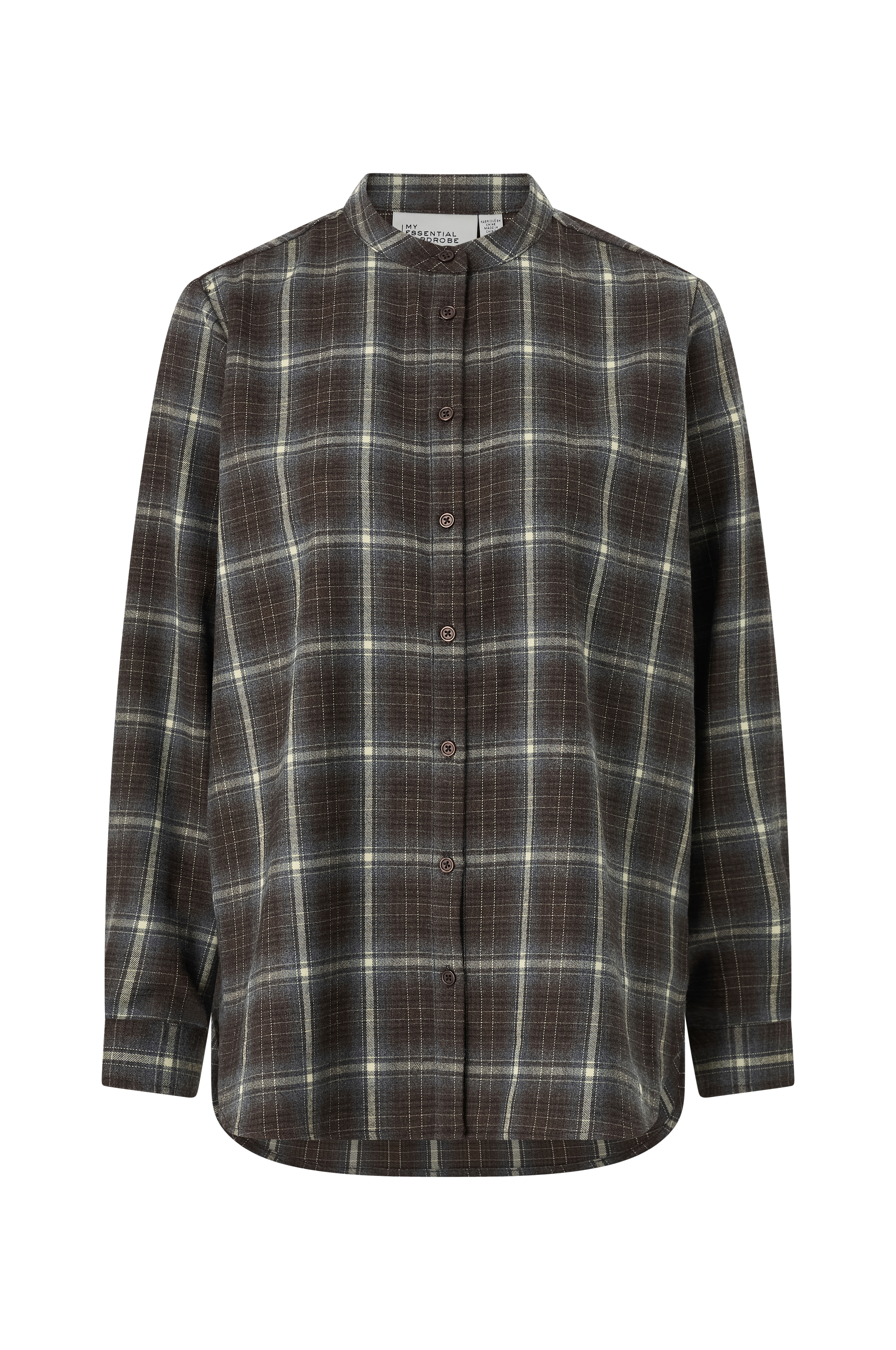 • Myk skjorte• Rund krage• Lange ermer• Mansjetter• Knappelukking• Avrundet hem