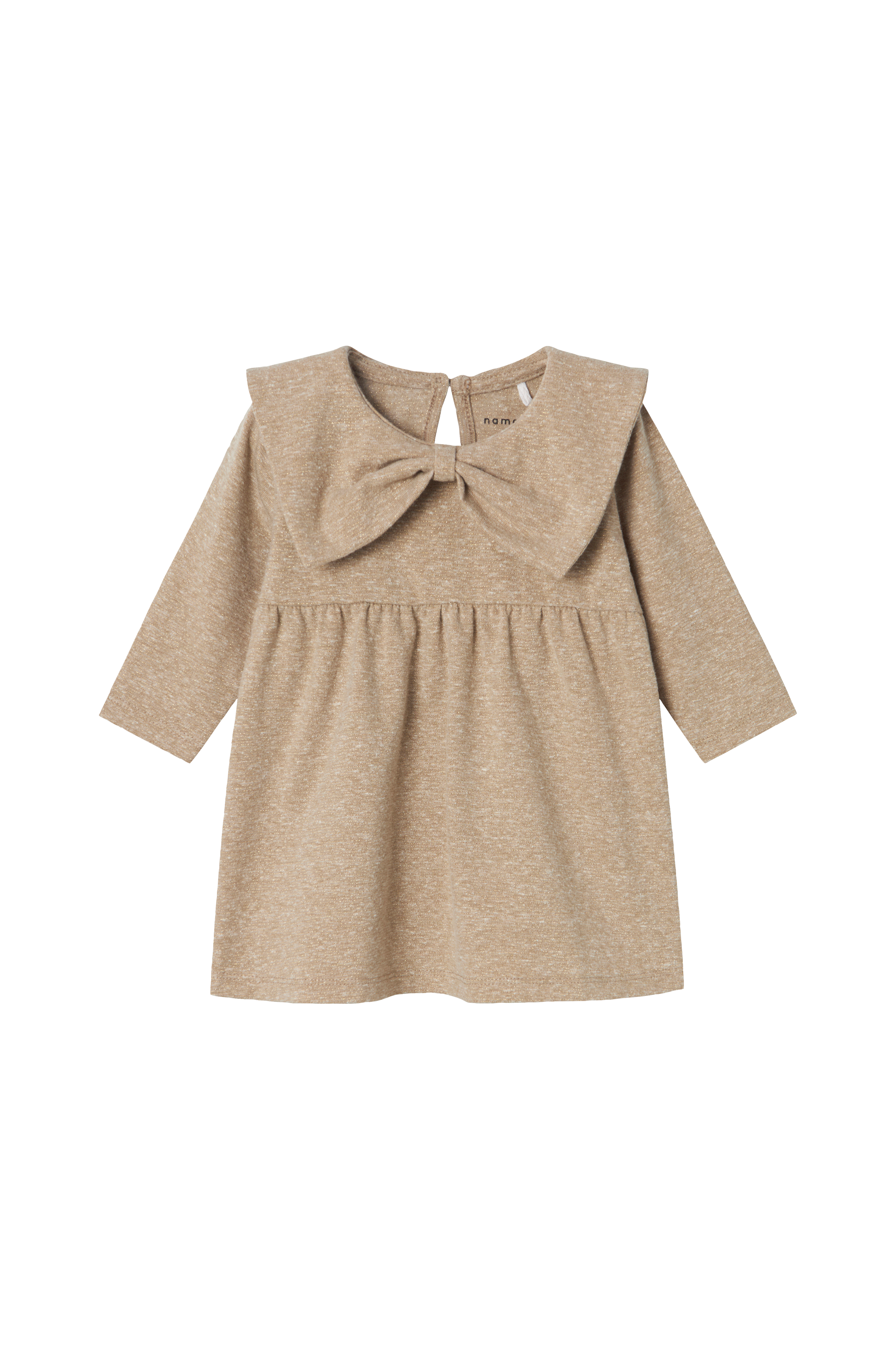 • Rund hals med knapp bakpå