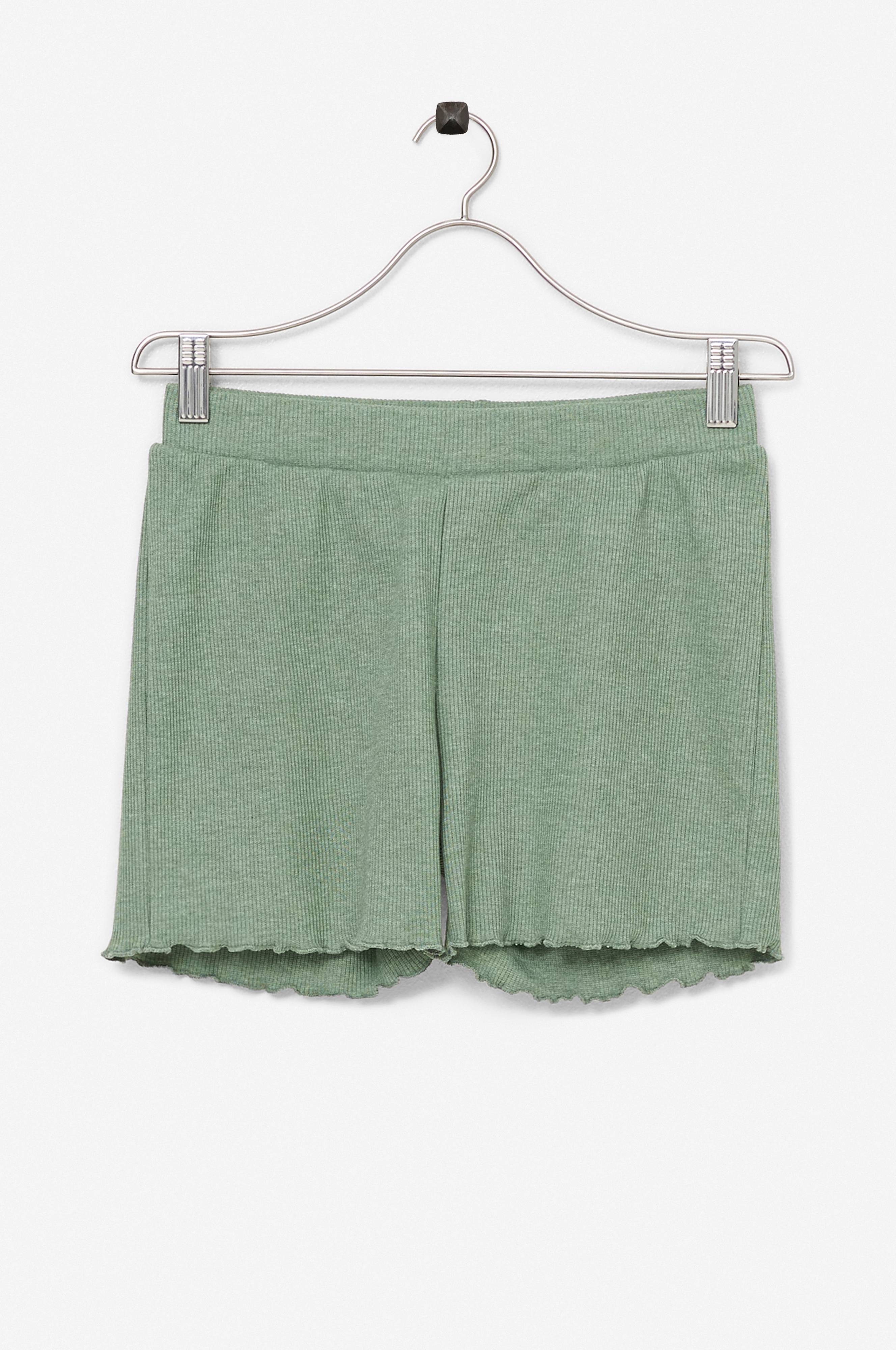 • Ribbestrikket modell i jersey• Justerbart elastisk midjebånd• Brede bein med bølget kant