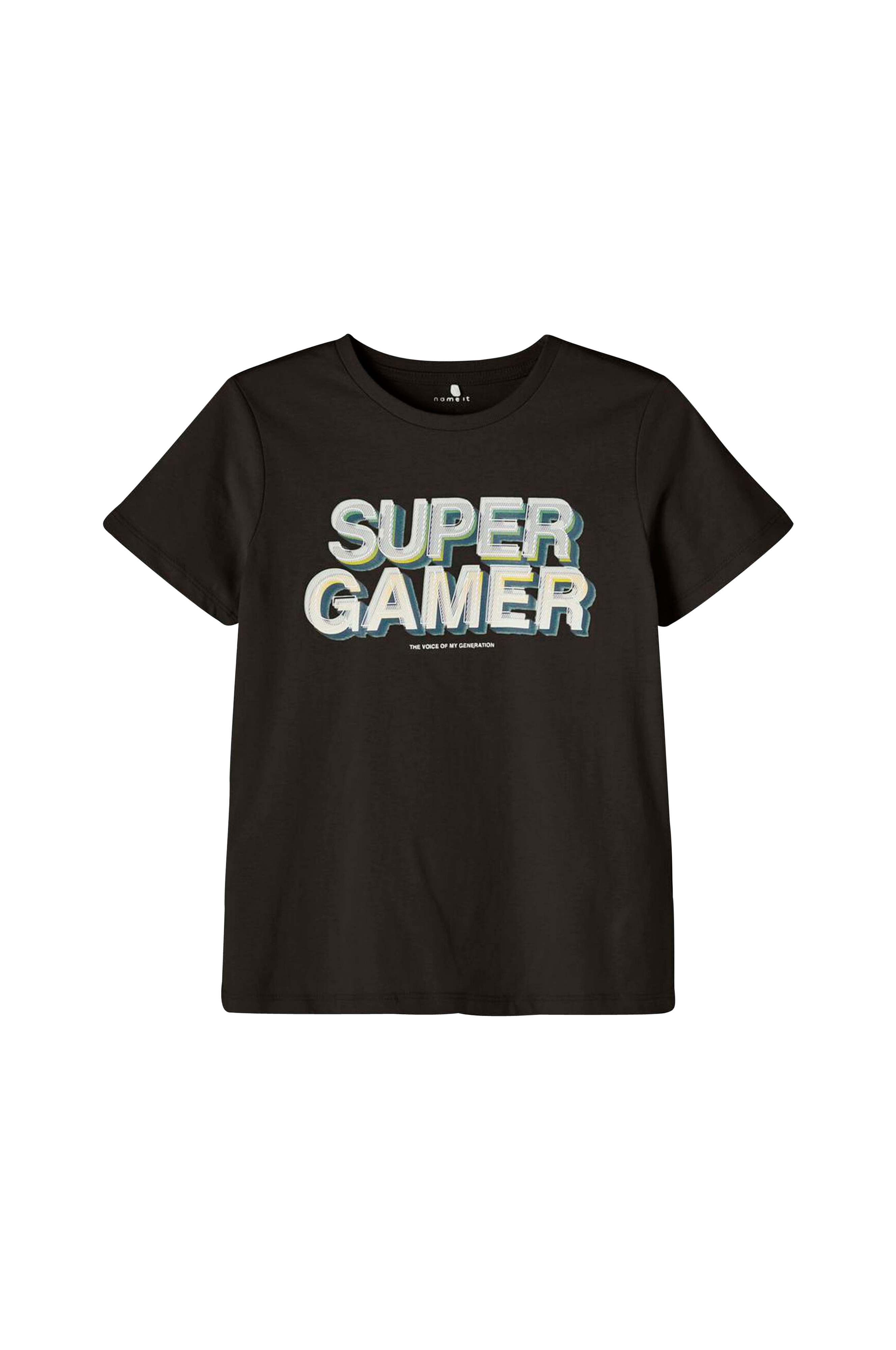 T-shirt i myk, elastisk bomull. Rund hals og trykk foran.