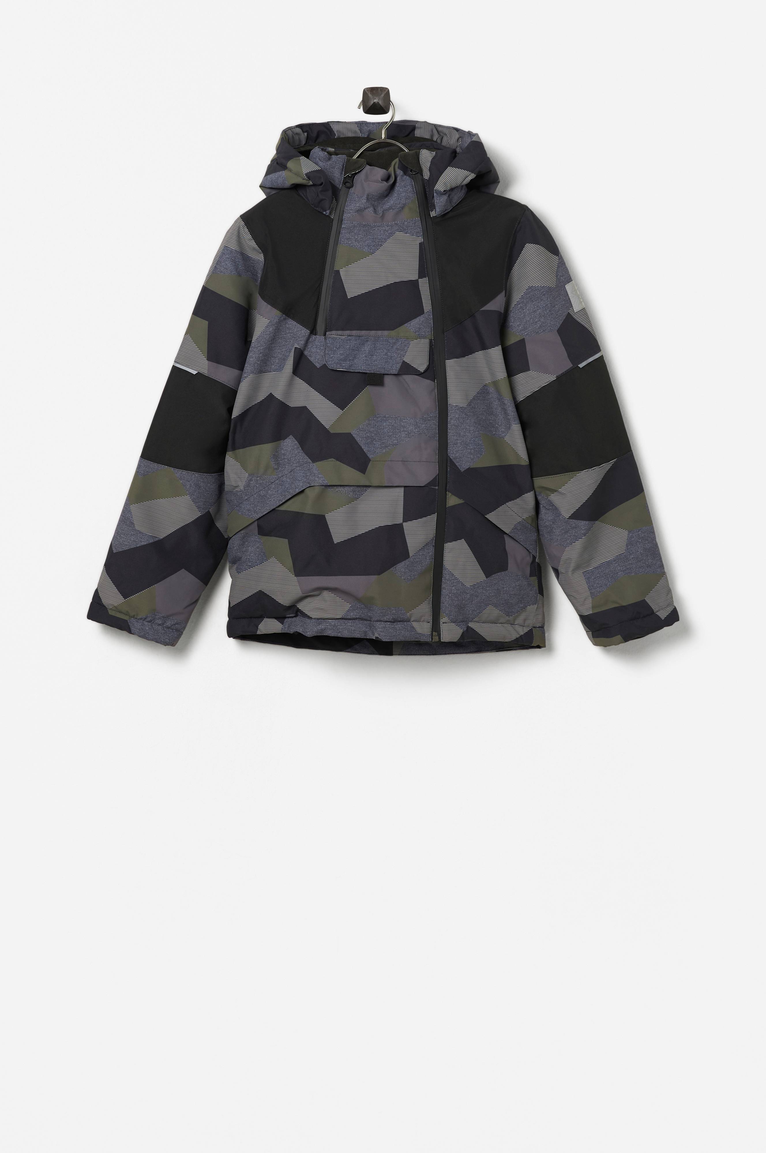 Avtagbar hette med strikk i forkanten. Høy krage med myk, børstet trikot på innsiden. Lukkes med lang glidelås. Jakken har også en kort glidelås foran for ventilasjon. To glidelåslommer nederst og en magelomme med borrelås. Elastisk vrangbord i trikot med tommelhull i ermekantene. Elastisk snølås i midjen. Refleksdetaljer rundt.