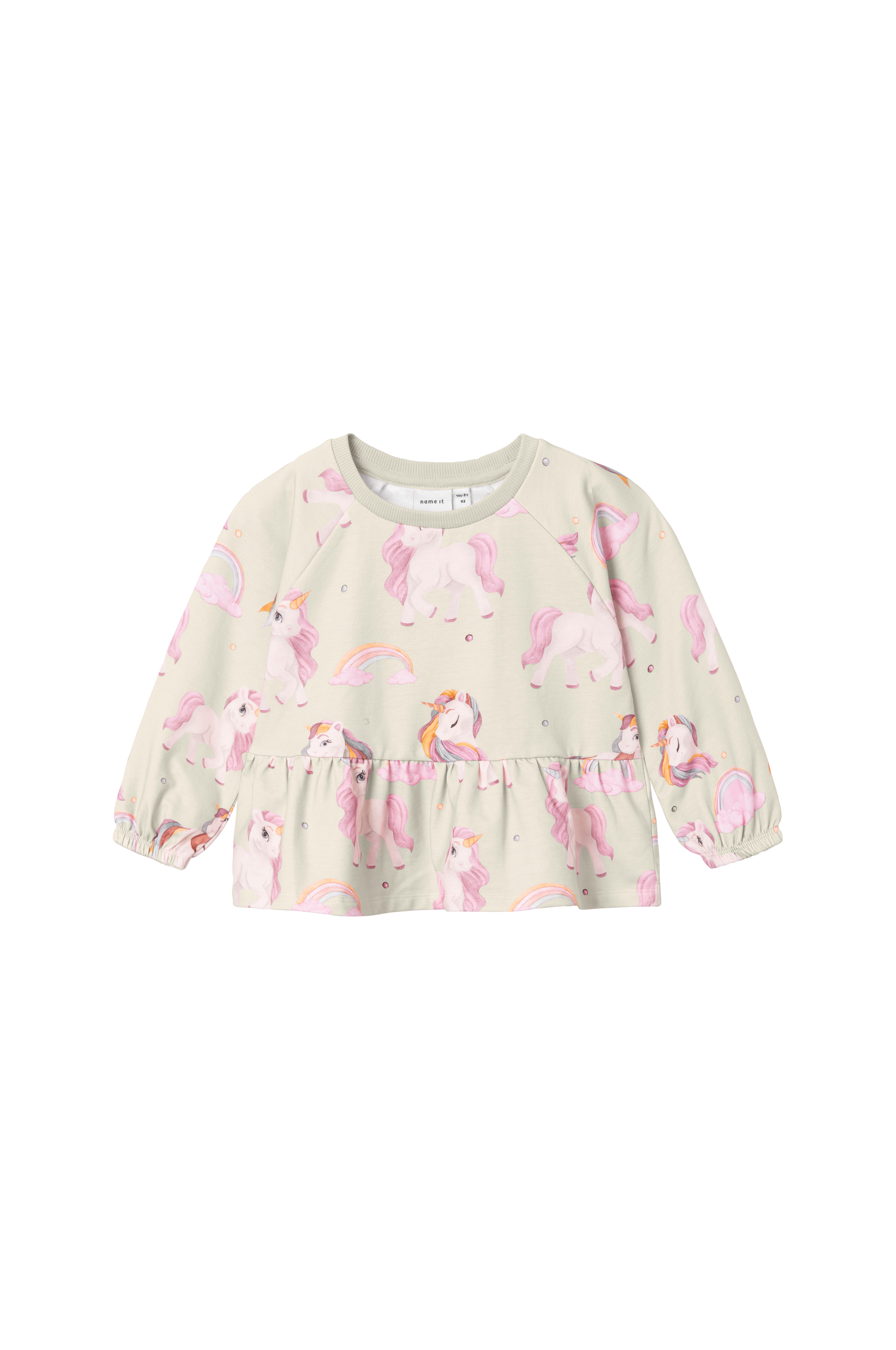 • Collegegenser med enhjørninger• Volang på bunnen• Raglanermer• Elastiske ermeender