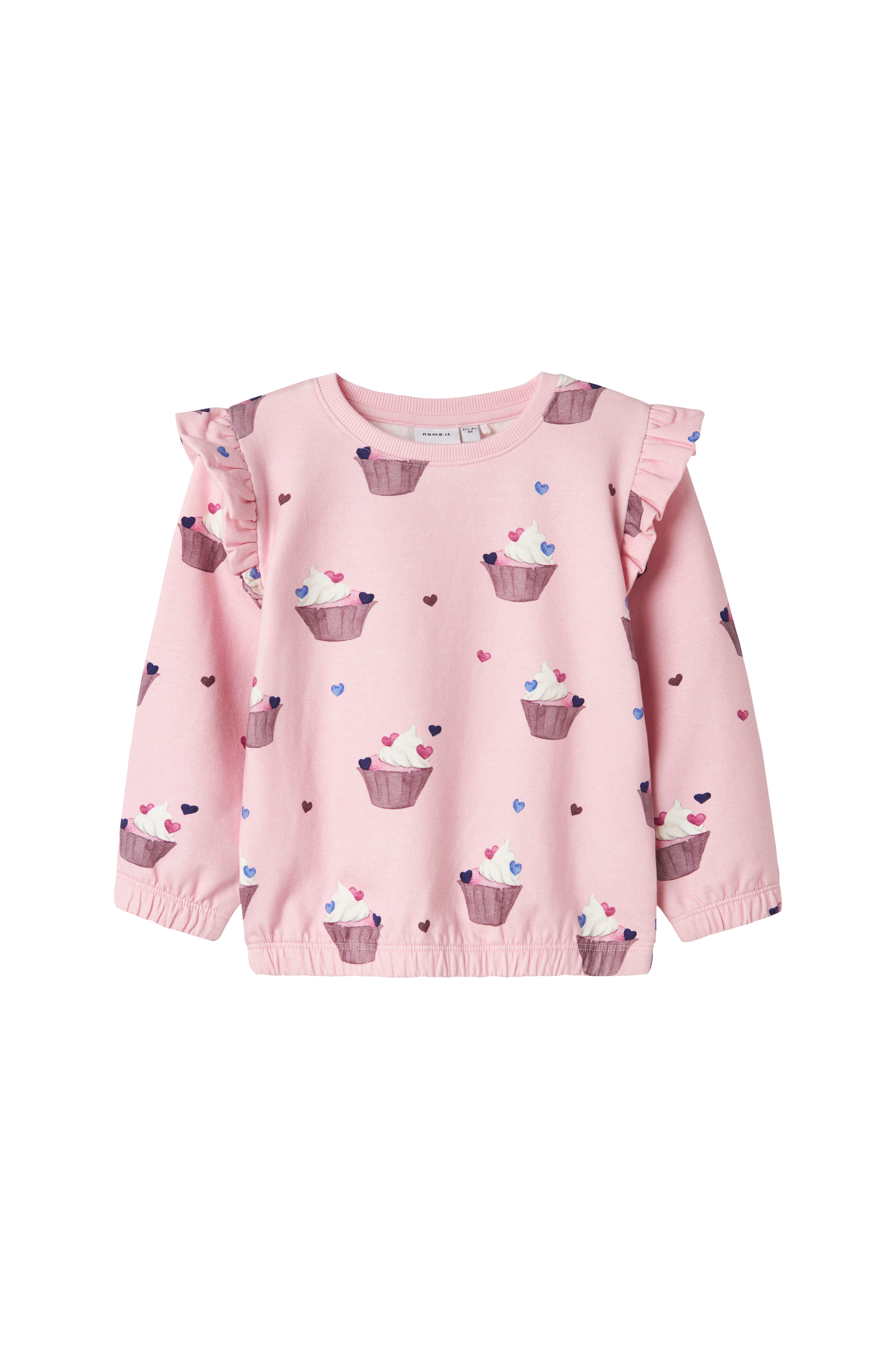 • Collegegenser i stretchbomull• Myk, børstet innside• Rund hals• Volanger over skuldrene• Lange ermer• Gummistrikk i ermeslutten og i nedre kant