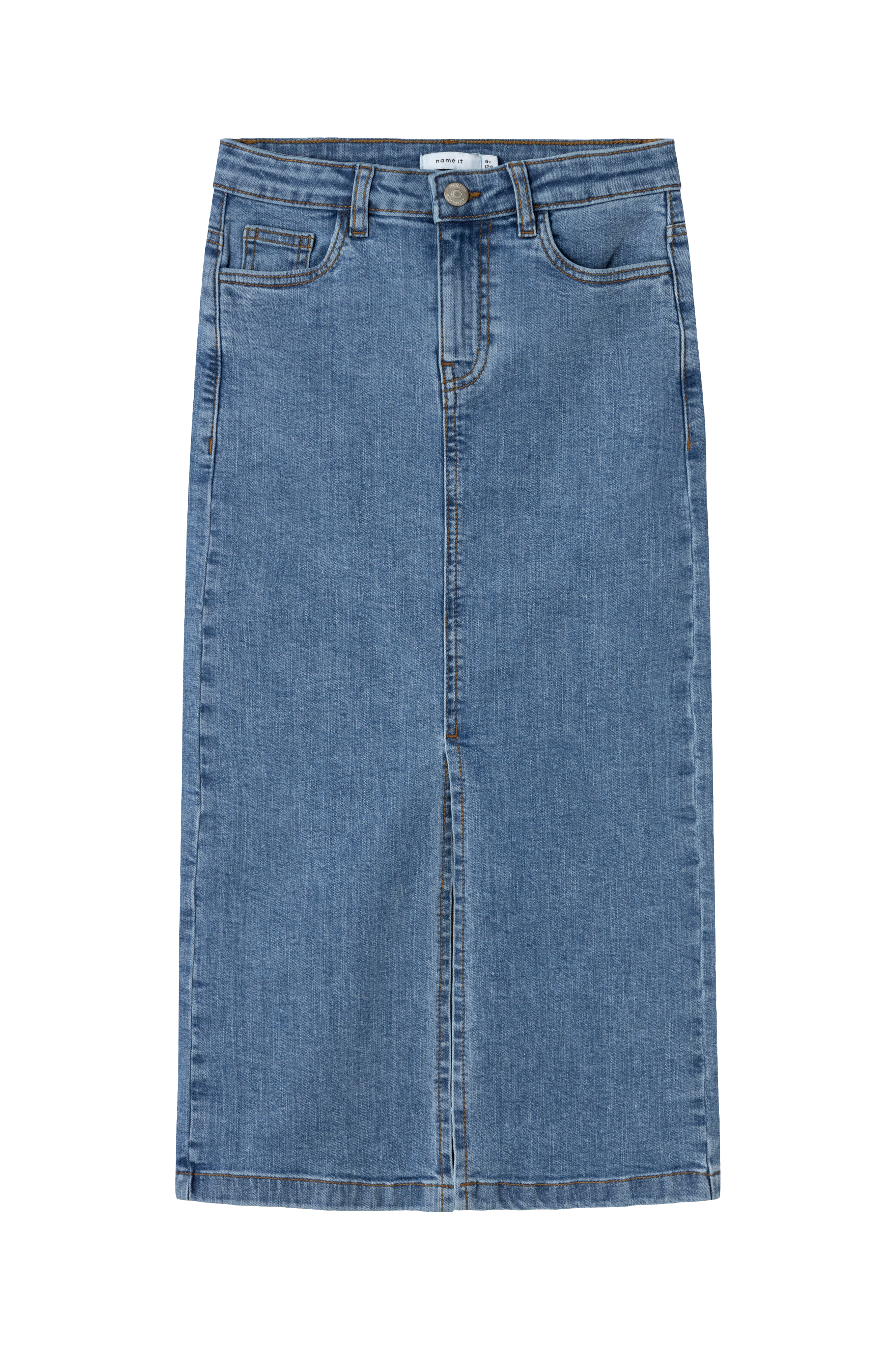 • Denim skjørt i stretch denim• Justerbar midje• Femlommemodell• Lynlås• Splitt foran
