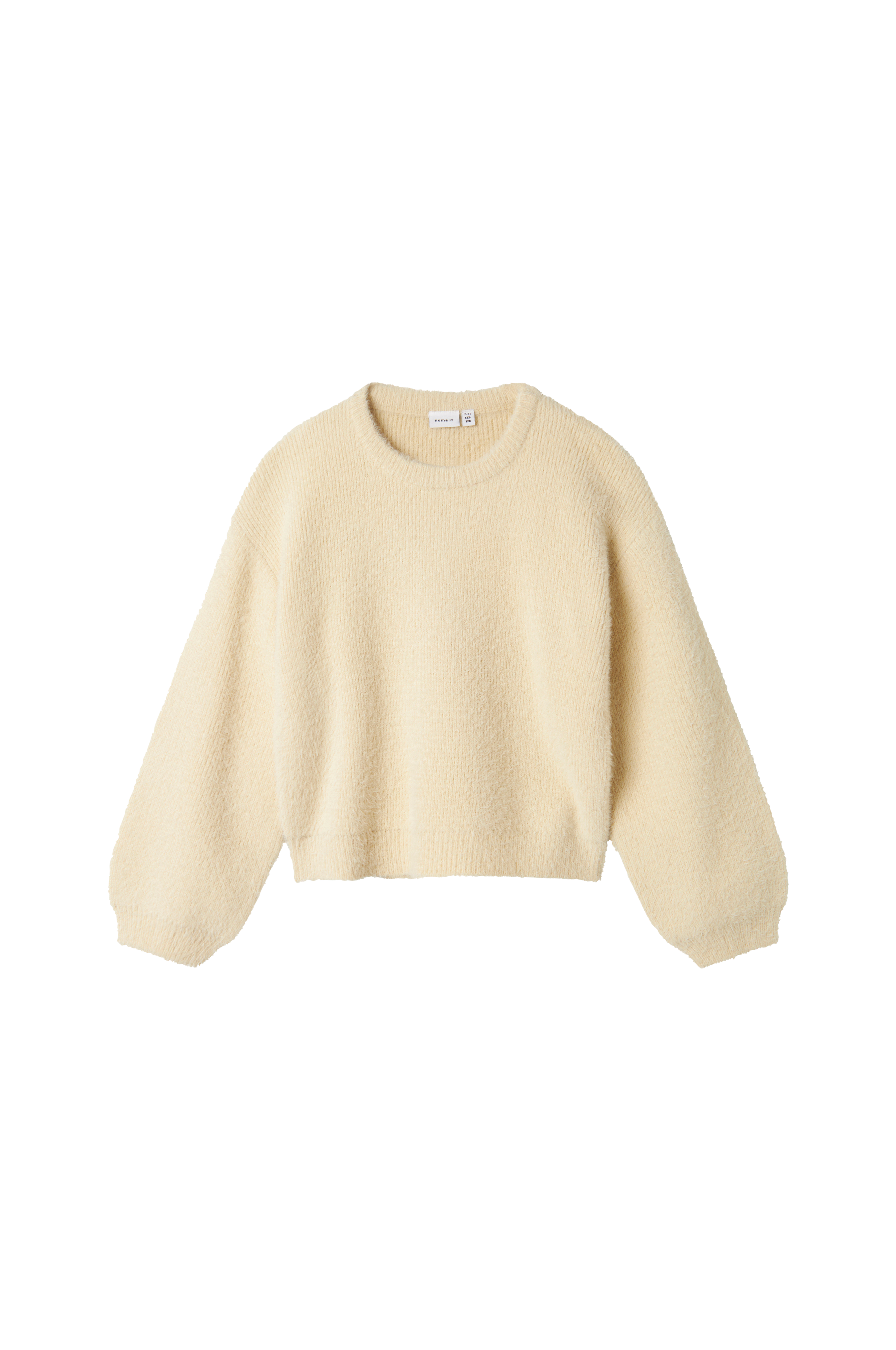 • Strikket genser i myk kvalitet• Rund halsringning• Utringede skuldre• Ballongermer• Ribbete kanter ved armenden og på bunnen