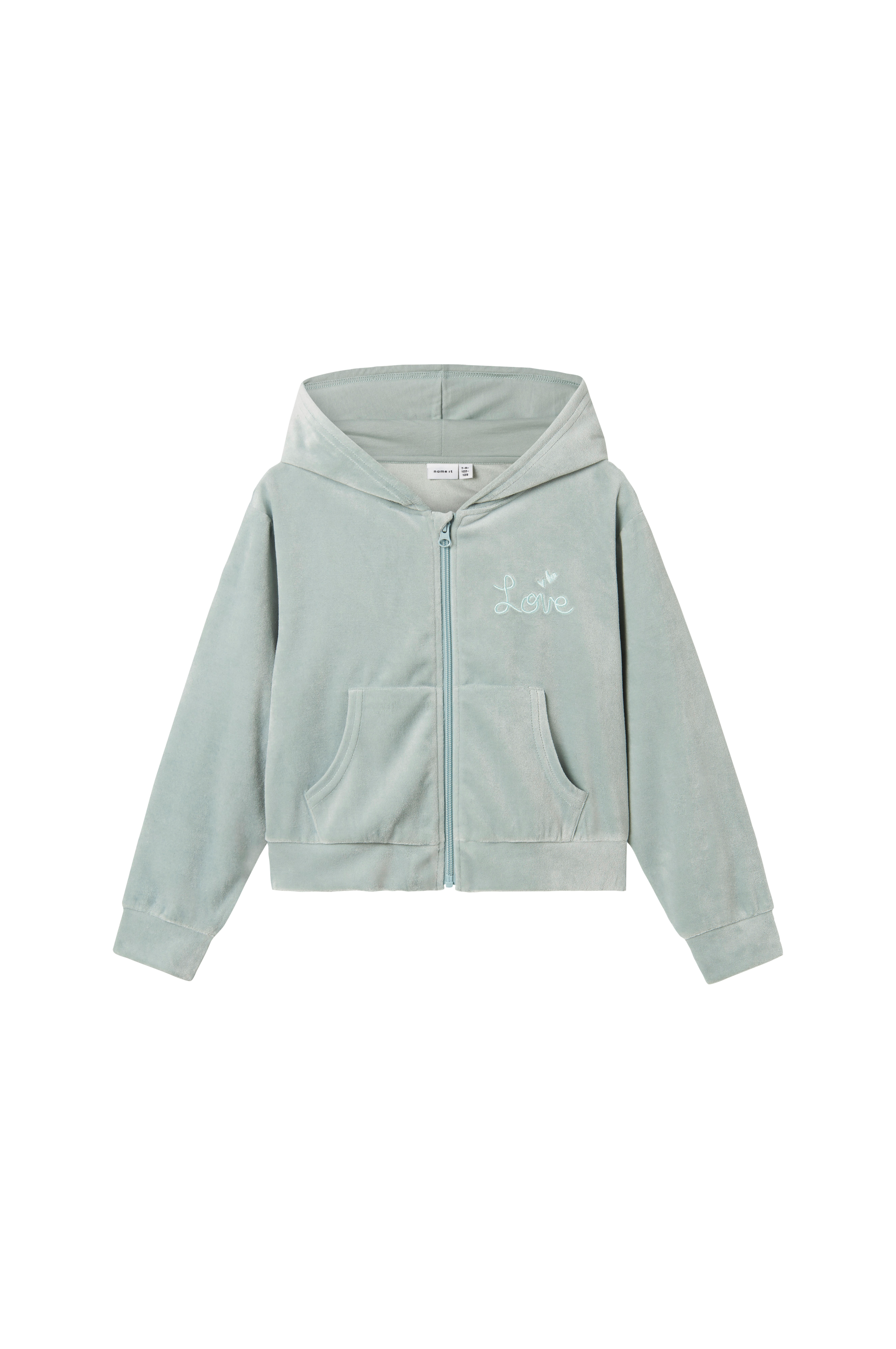 • Hettegenser i myk velur• Glidelås• Broderi på brystet• To lommer• Mansjetter i ermeslutten og på bunnen