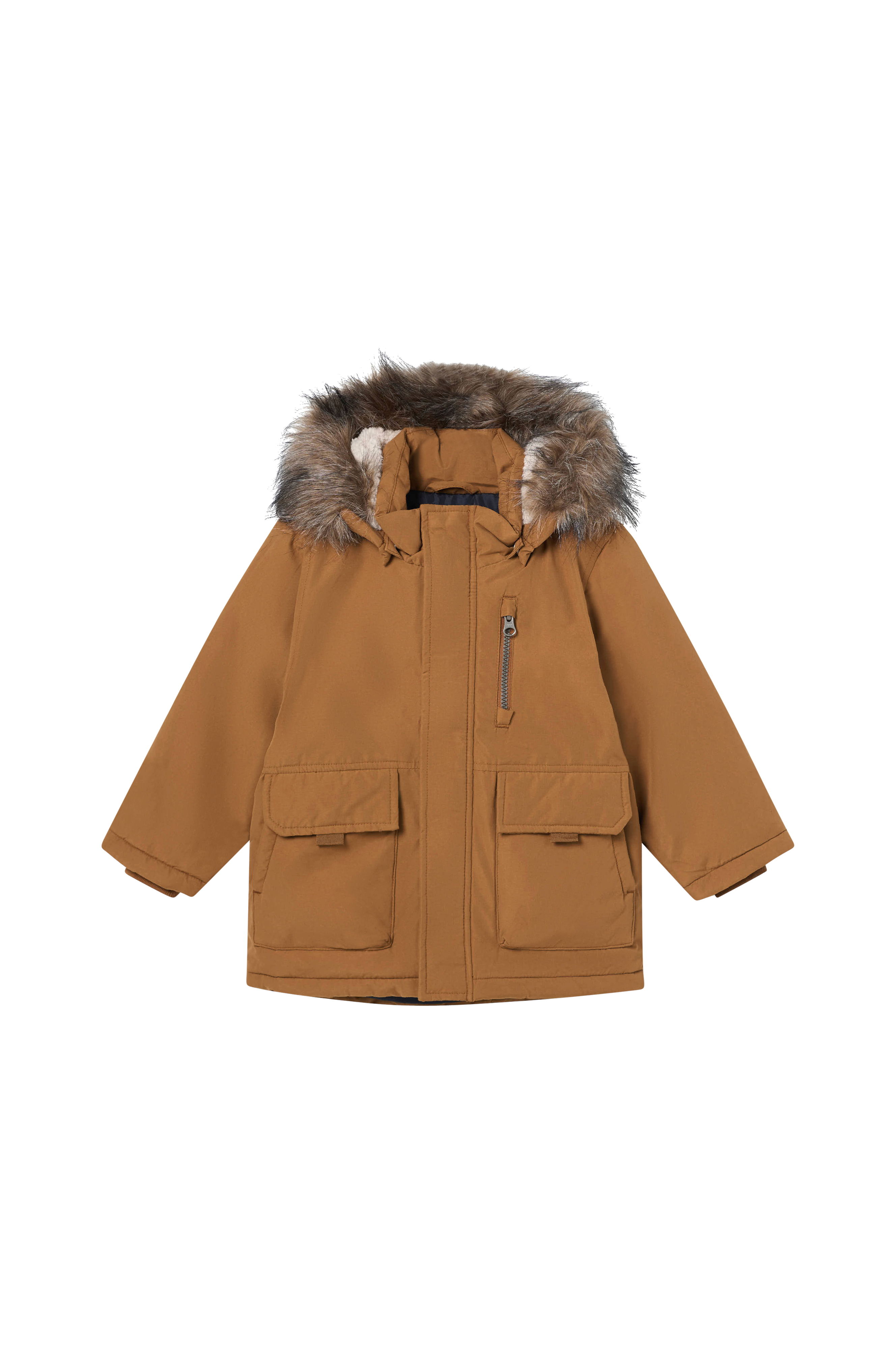 • Polstre parkasmodell• Avtagbar hette med teddy-fôring• Avtagbar kant i fuskepels på hetten• Glidelås• Klafflomme over glidelåsen med trykknapper• Ribbet mansjetter i ermeslutten• Sidelommer