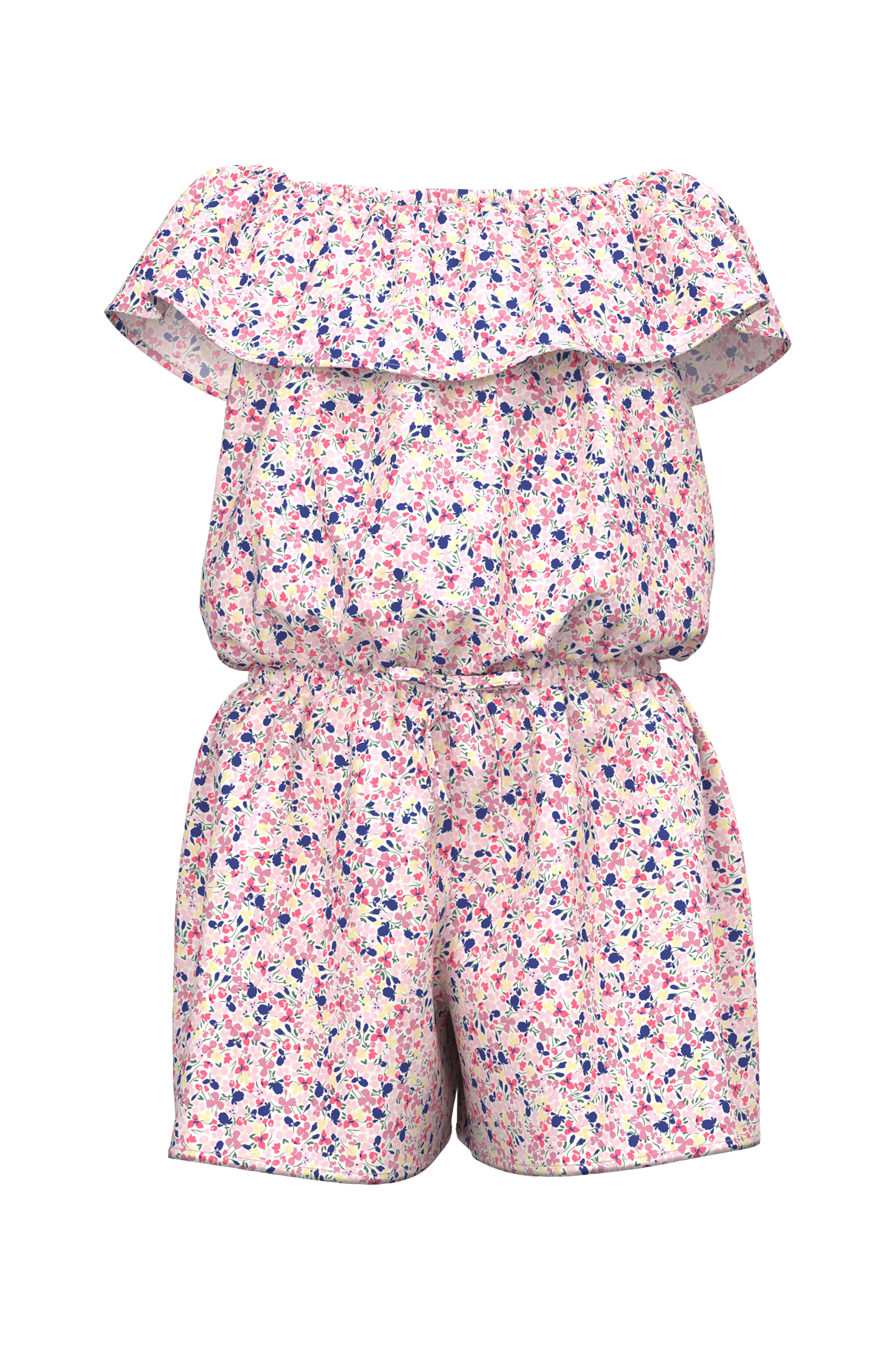 • Rund, elastisk hals med volang rundt • Ermløs • Elastisk strikk ved midjen • Påsydd bånd foran • Korte, brede bein • Produktet inneholder gjenvunnet materiale som er brukt for å redusere mengden avfall, samtidig som det ikke er brukt nye ressurser.