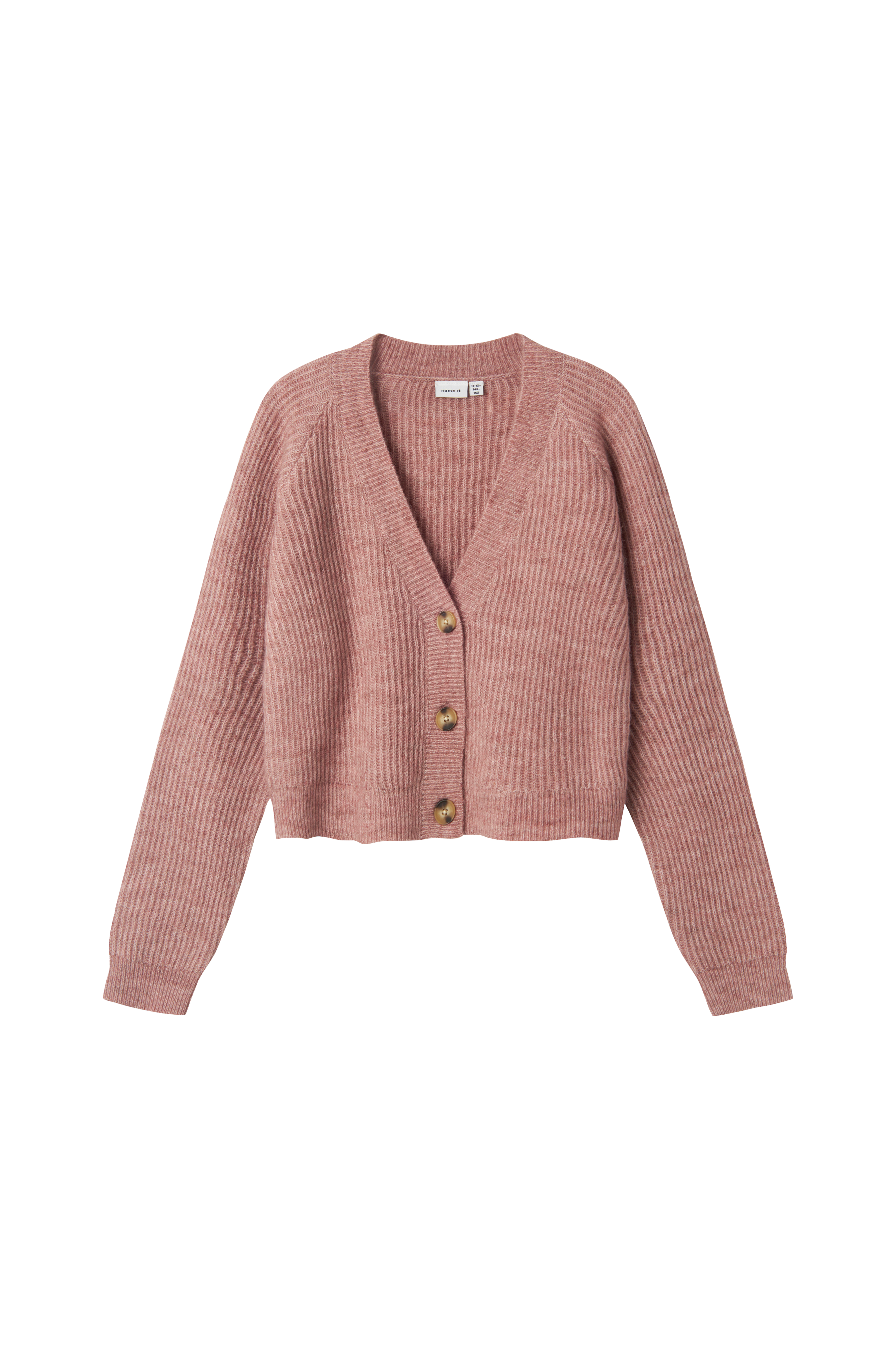 • Strikket kardigan• Kort modell• V-hals snitt• Knappelukking• Ribbestrikk i ermeslutten og på bunnen