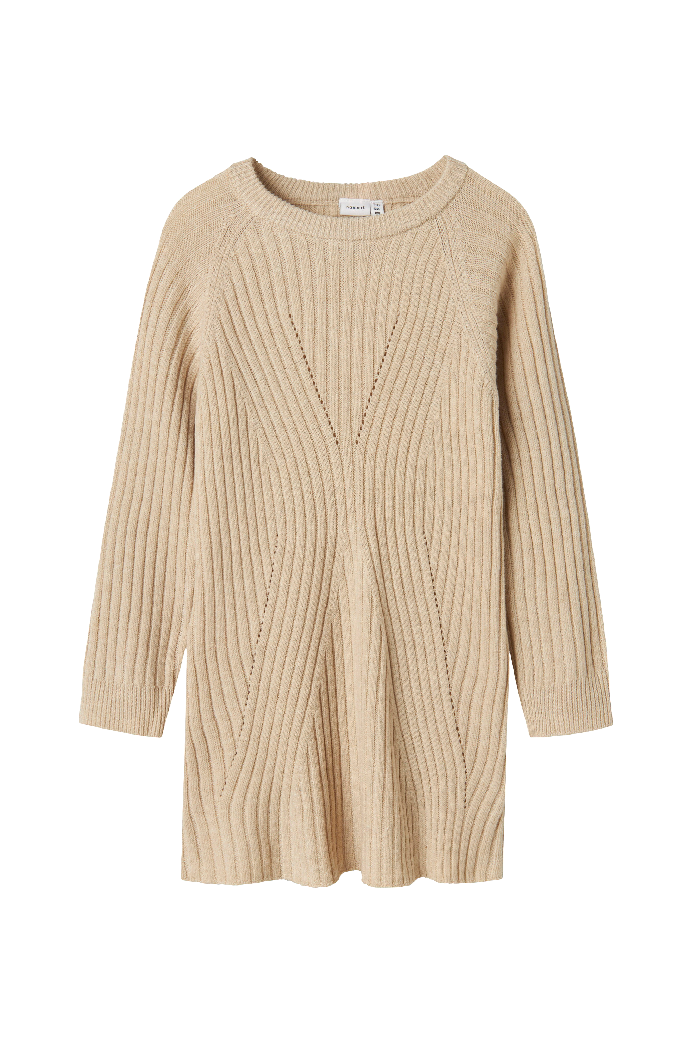 • Myk, strikket kjole• Rund halsringning• Lange ermer• Hullmønstrede detaljer