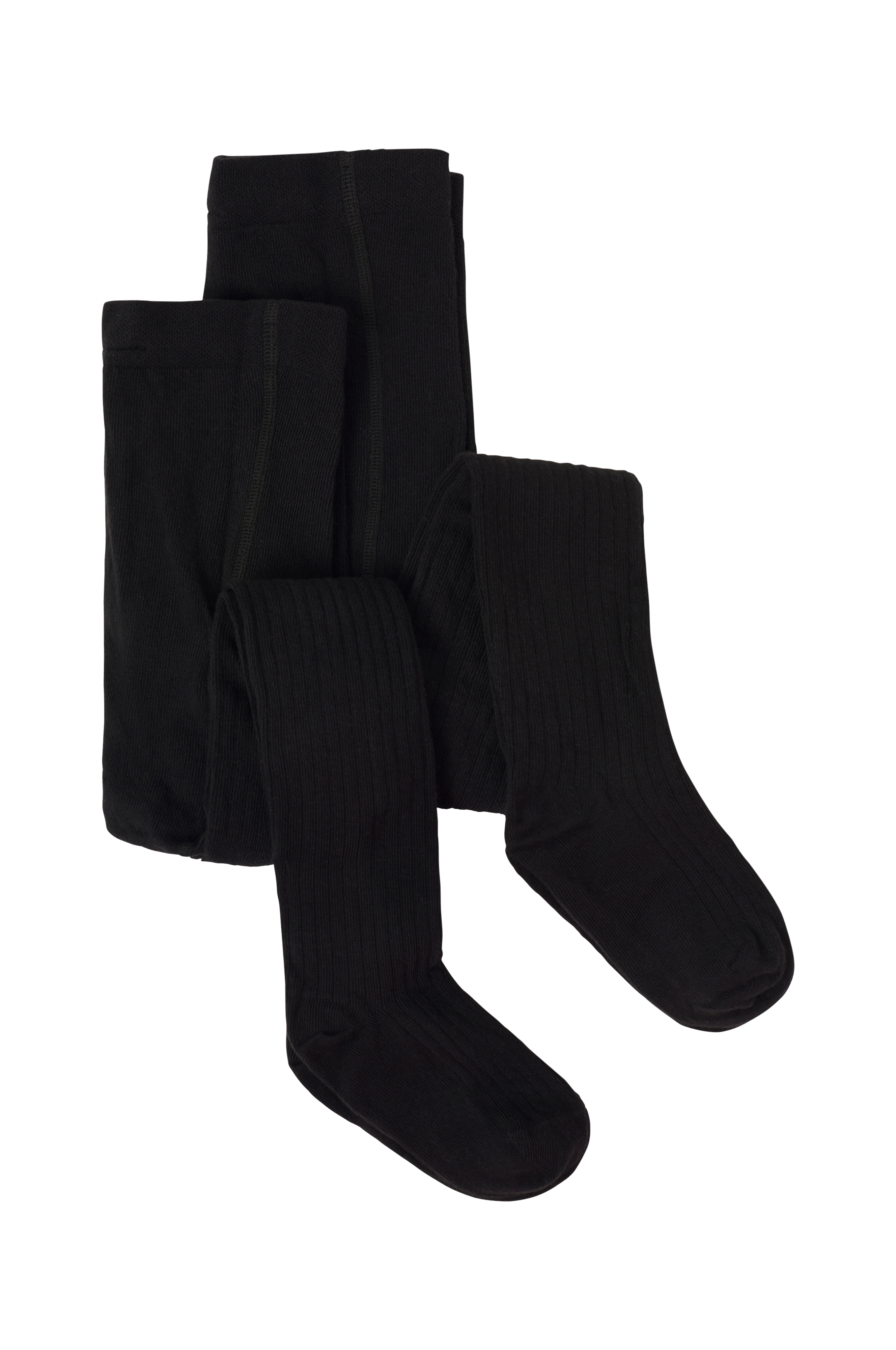 Ribbestrikket strømpebukse i bomullsmiks. Elastisk midje og hel fot. 2 par.