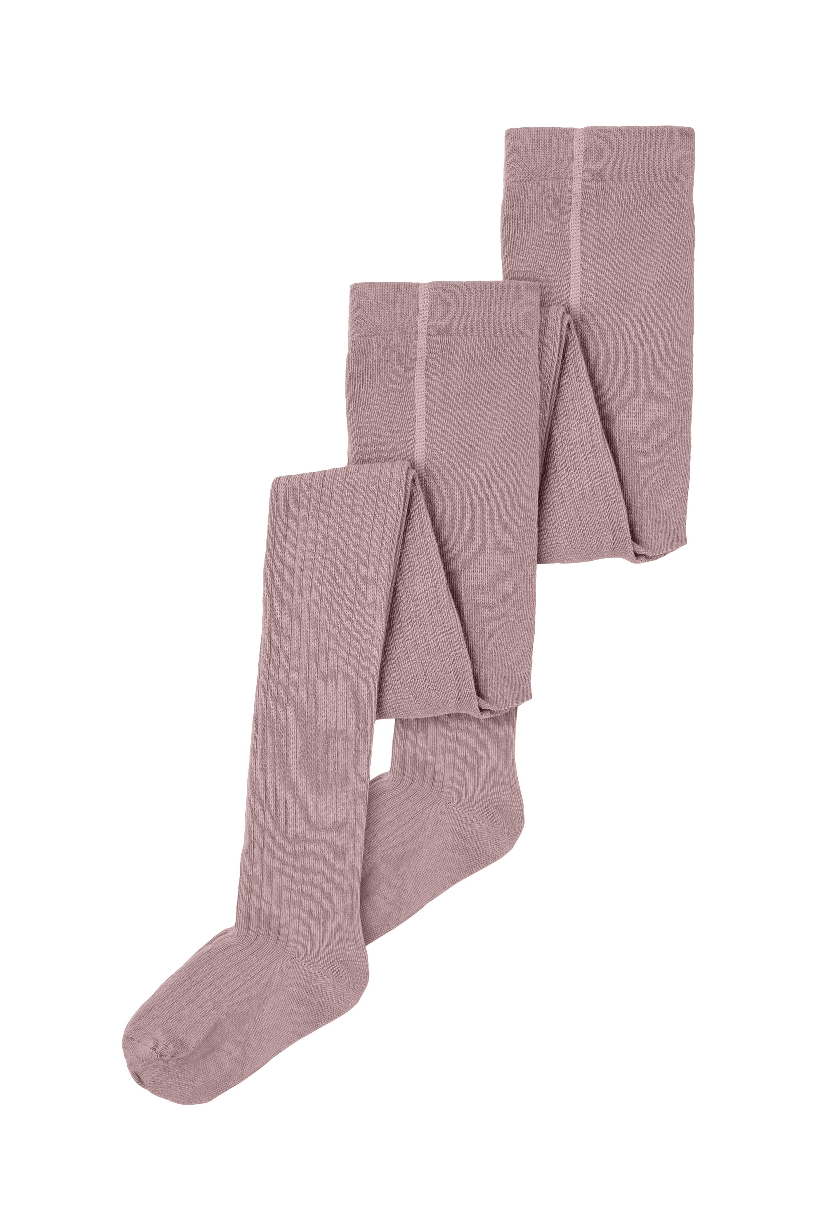 Ribbestrikket strømpebukse i bomullsmiks. Elastisk midje og hel fot. 2 par.