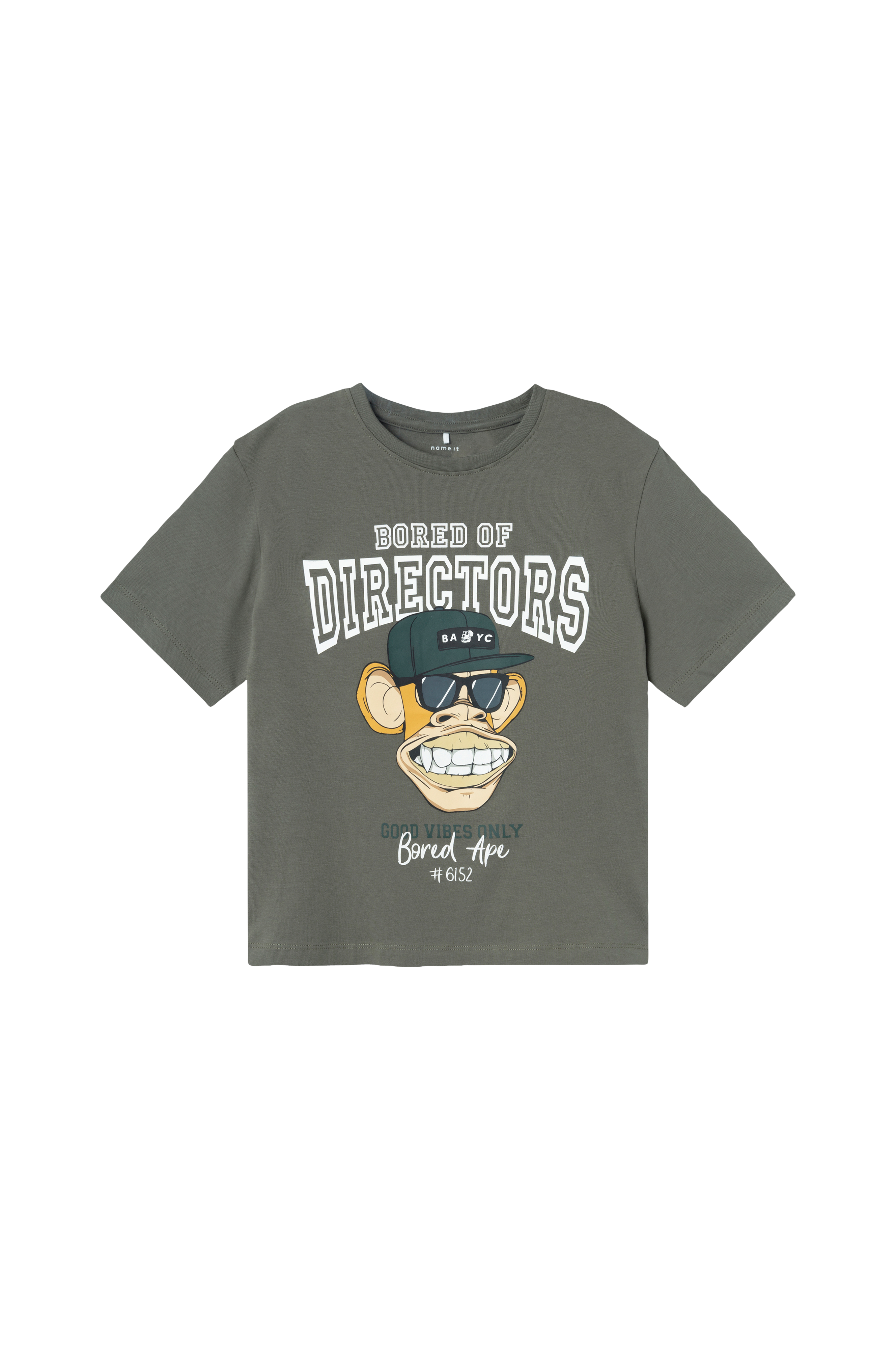 • Rett modell med stort trykk foran• Ribbet rund hals• Kort erme