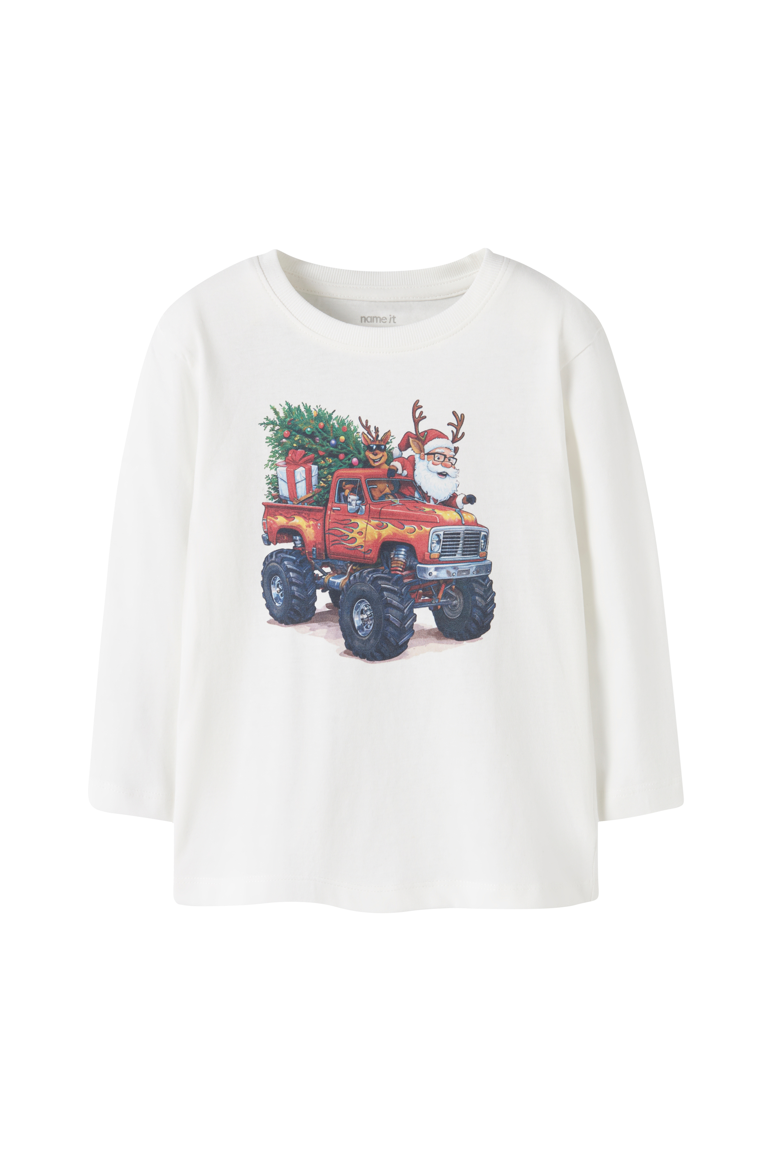 • Langermet t-skjorte i bomull• Rund, ribbet hals• Stort, trykket julemotiv foran
