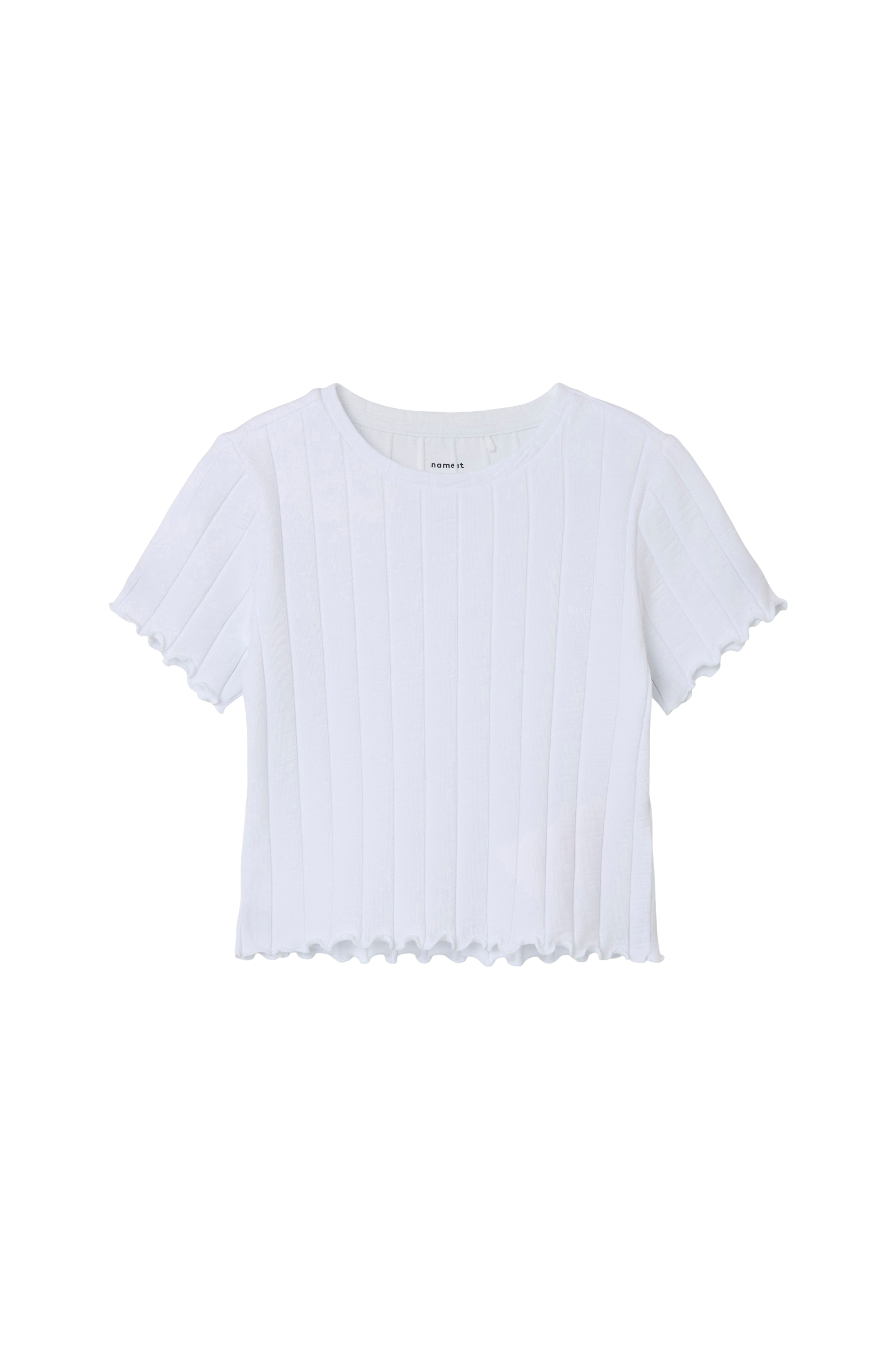 • Stretchy jersey med ribbet struktur• Rund hals• Korte ermer med bølgede kanter i ermeslutten• Bølget hem