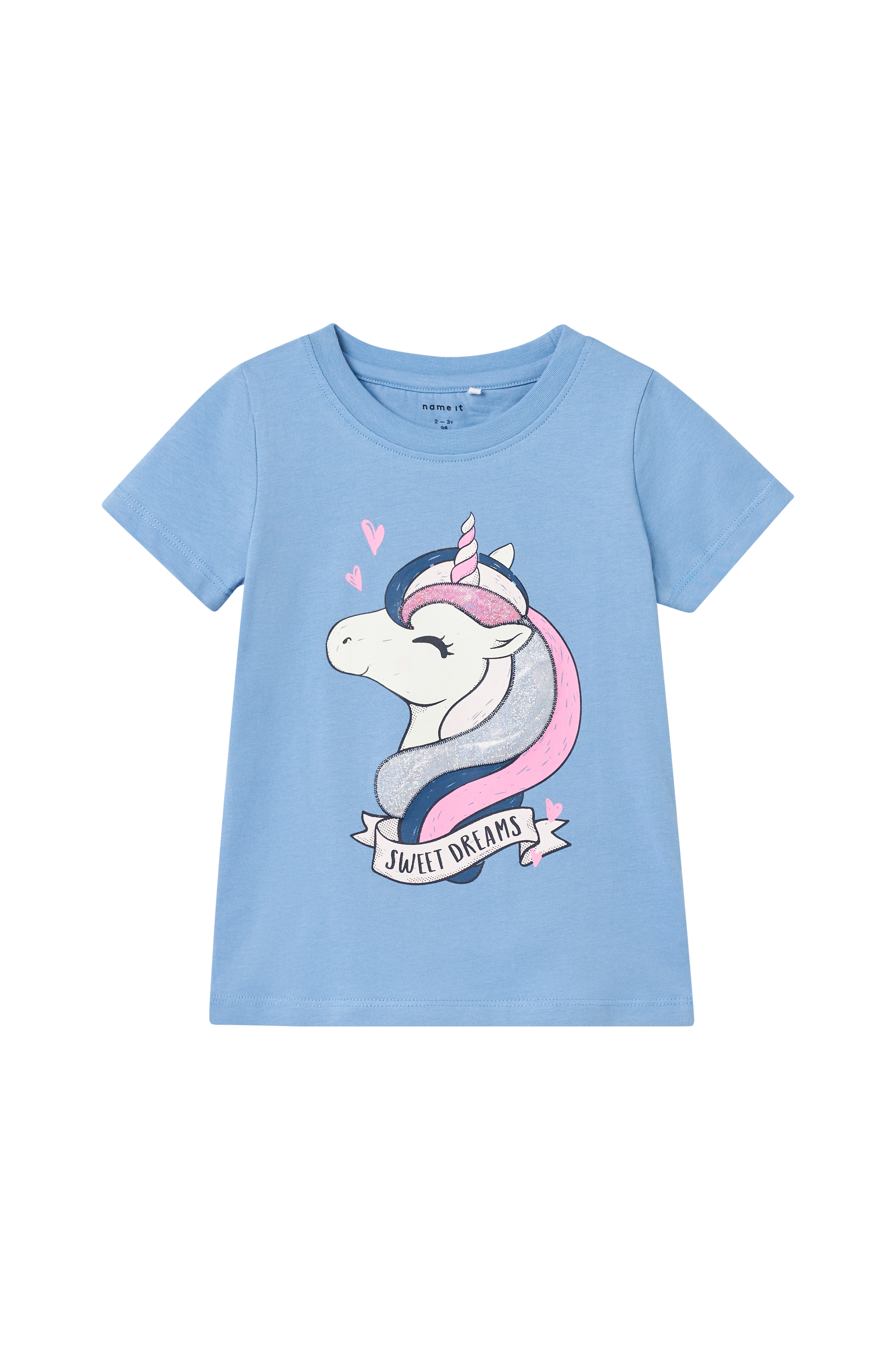 • Rett modell• Trykk foran med applique• Rund hals med ribbet kant• Kort erme