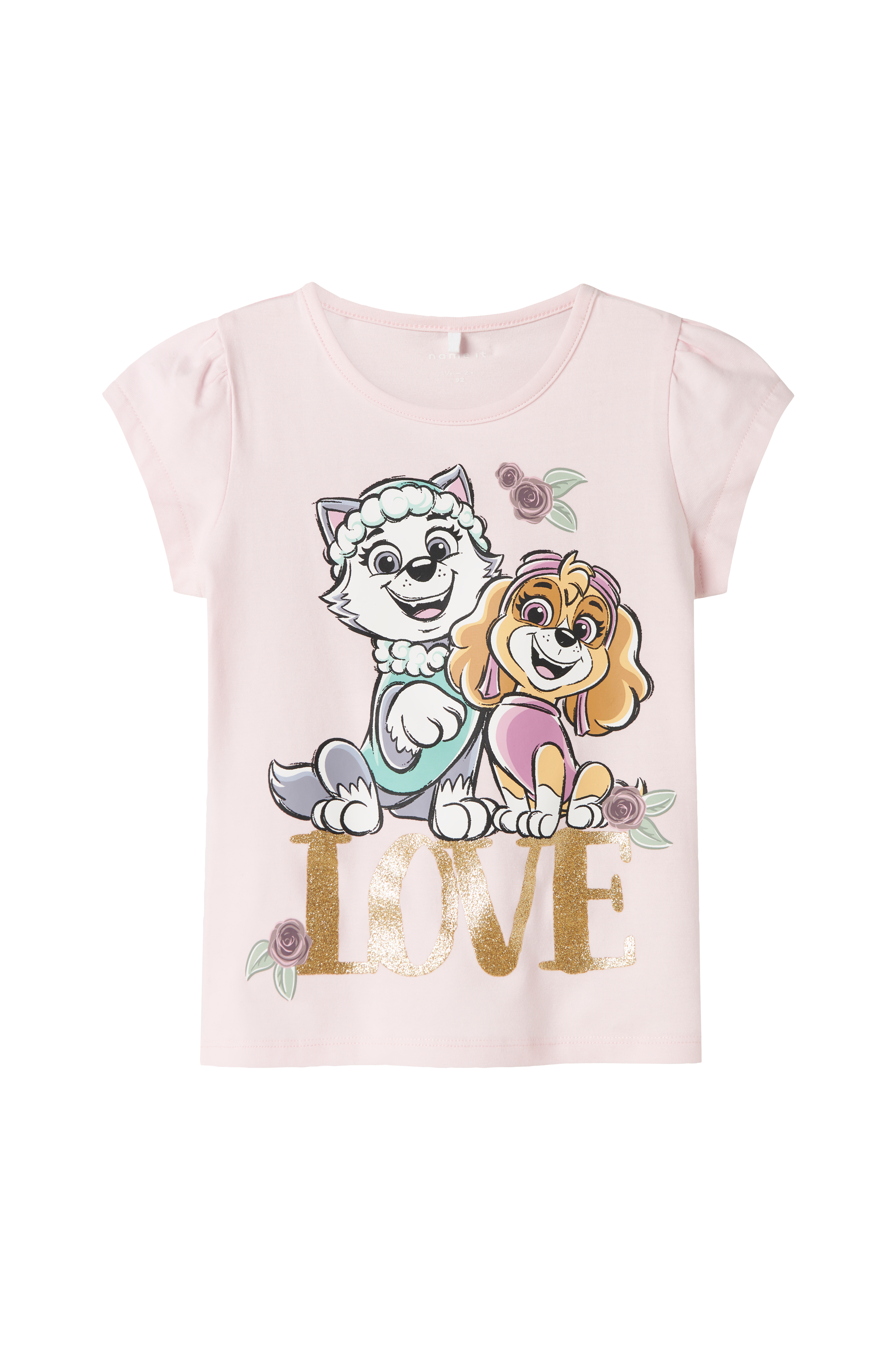 • Topp i stretchy bomull• Rund hals• Korte bobleermer• Trykk foran med gullglitrende detaljer