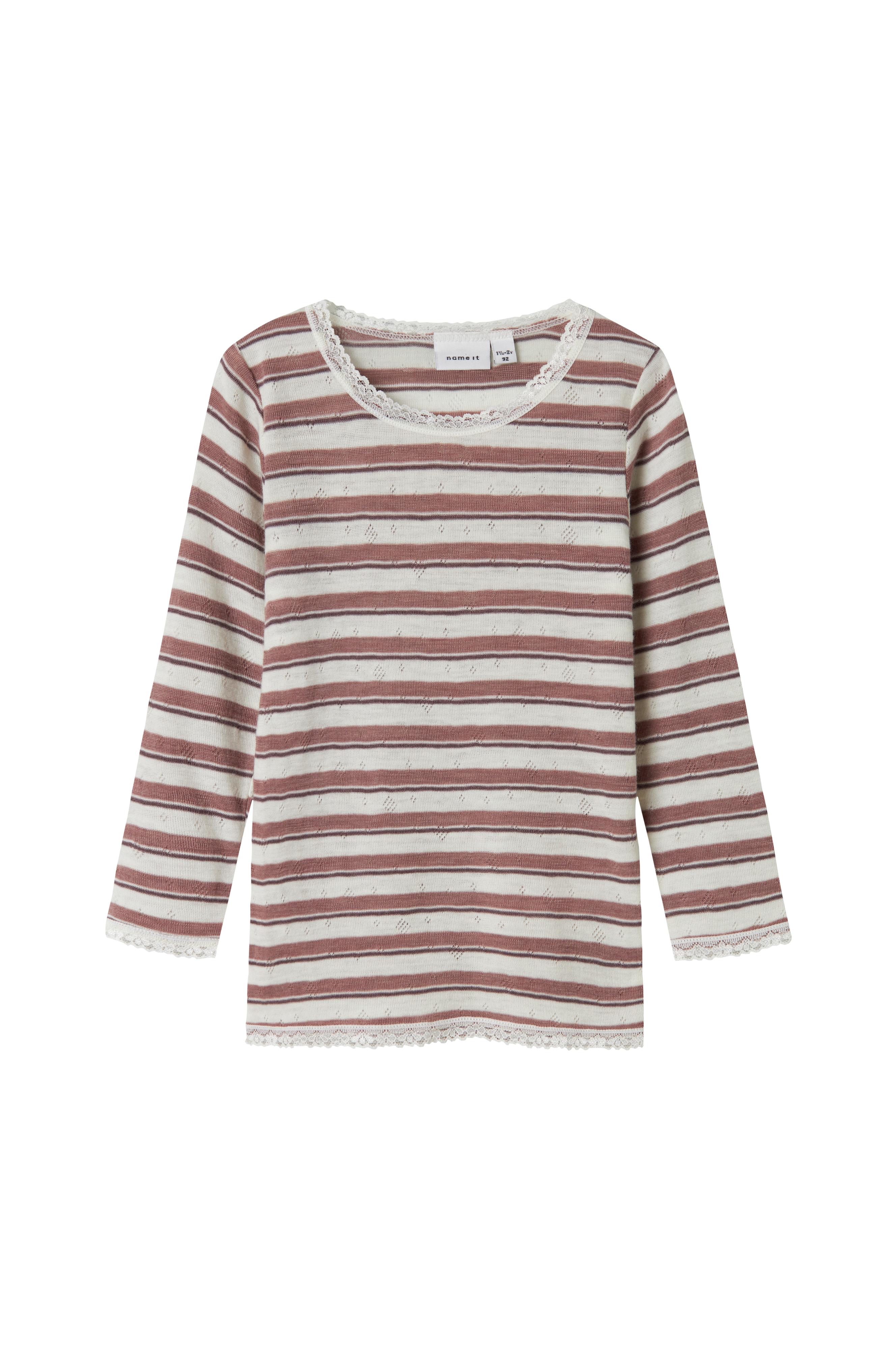 • Langermet topp i myk merinoull• Rund halsringning med blondekant rundt• Blondekanter ved armenden og på bunnen