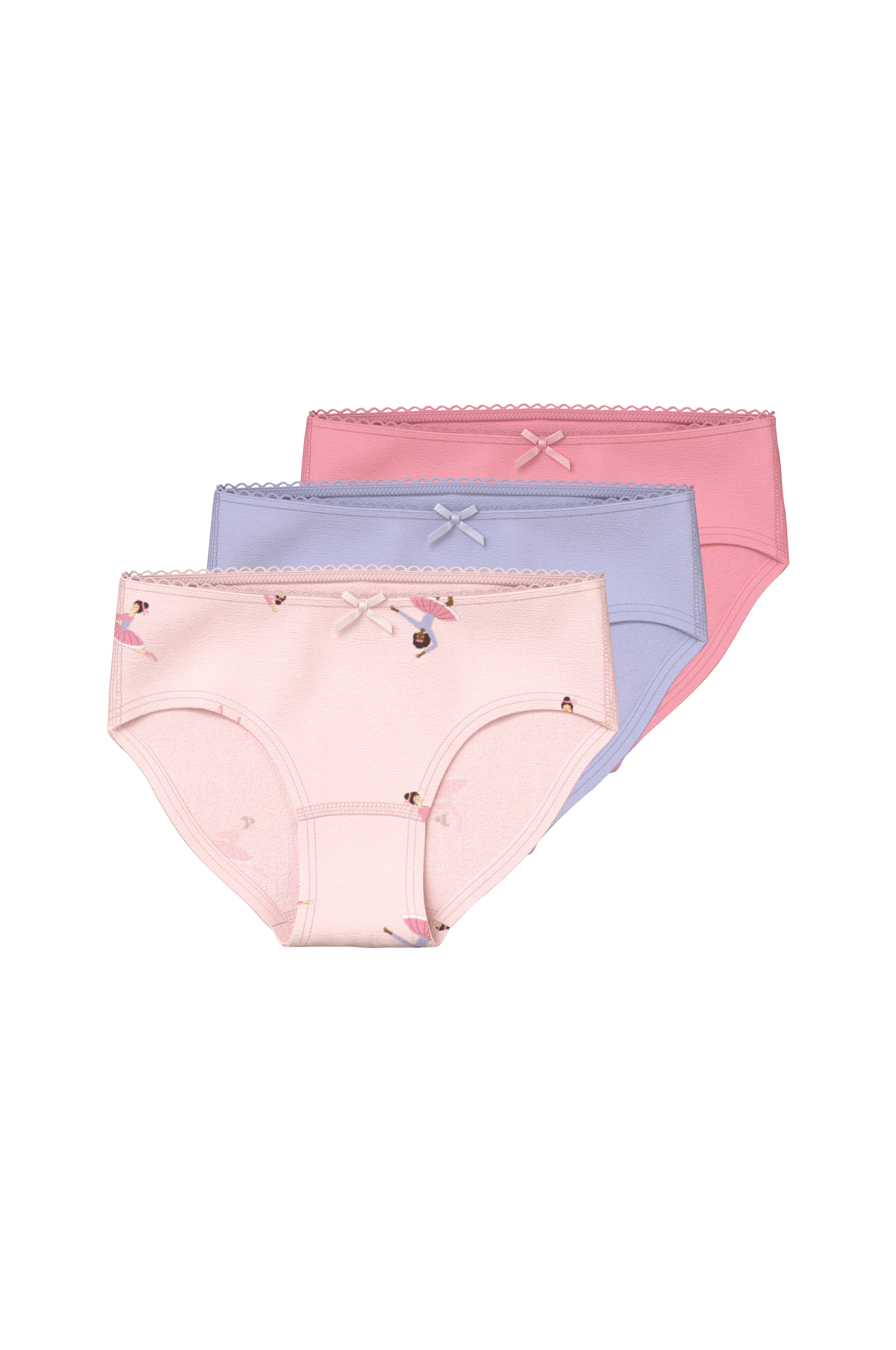 • 3-pakke truser i myk bomull• Tre annerledese farger• Blondekant på toppen• Fôret skritt