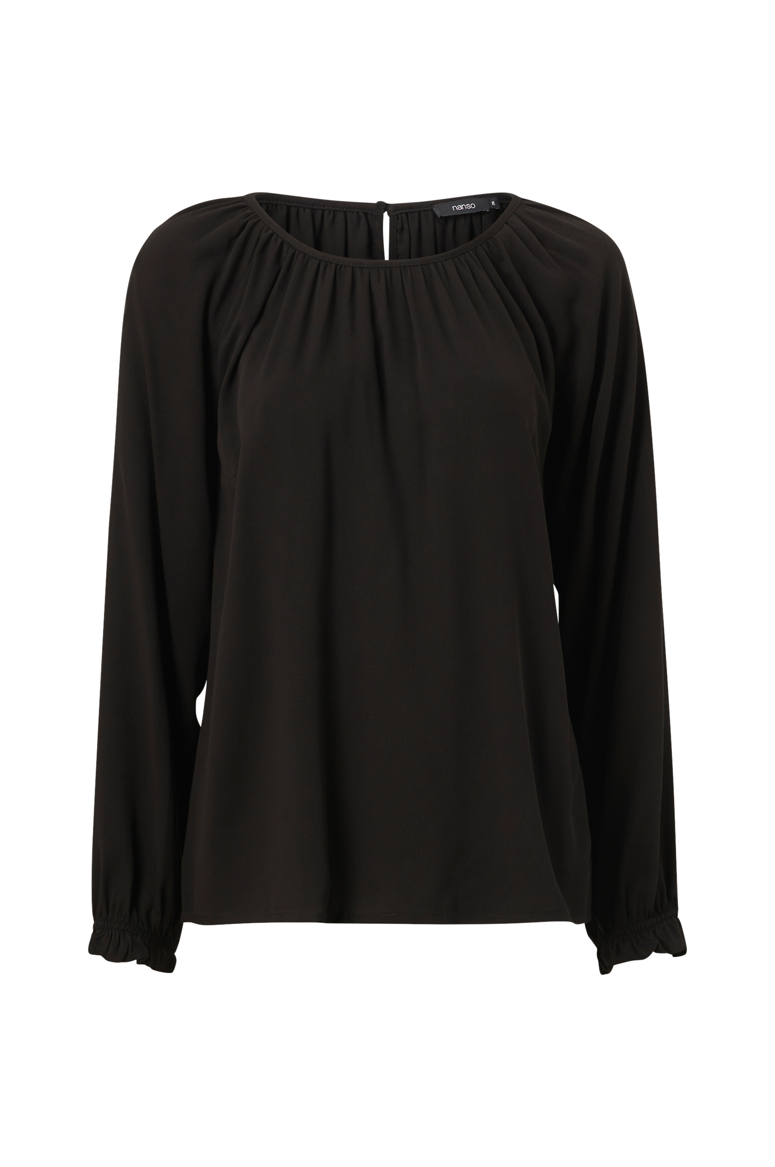 • Bluse i viskose• Rund, samlet hals• Ventilasjon med knapp i nakken• Lange ermer med elastiske mansjetter