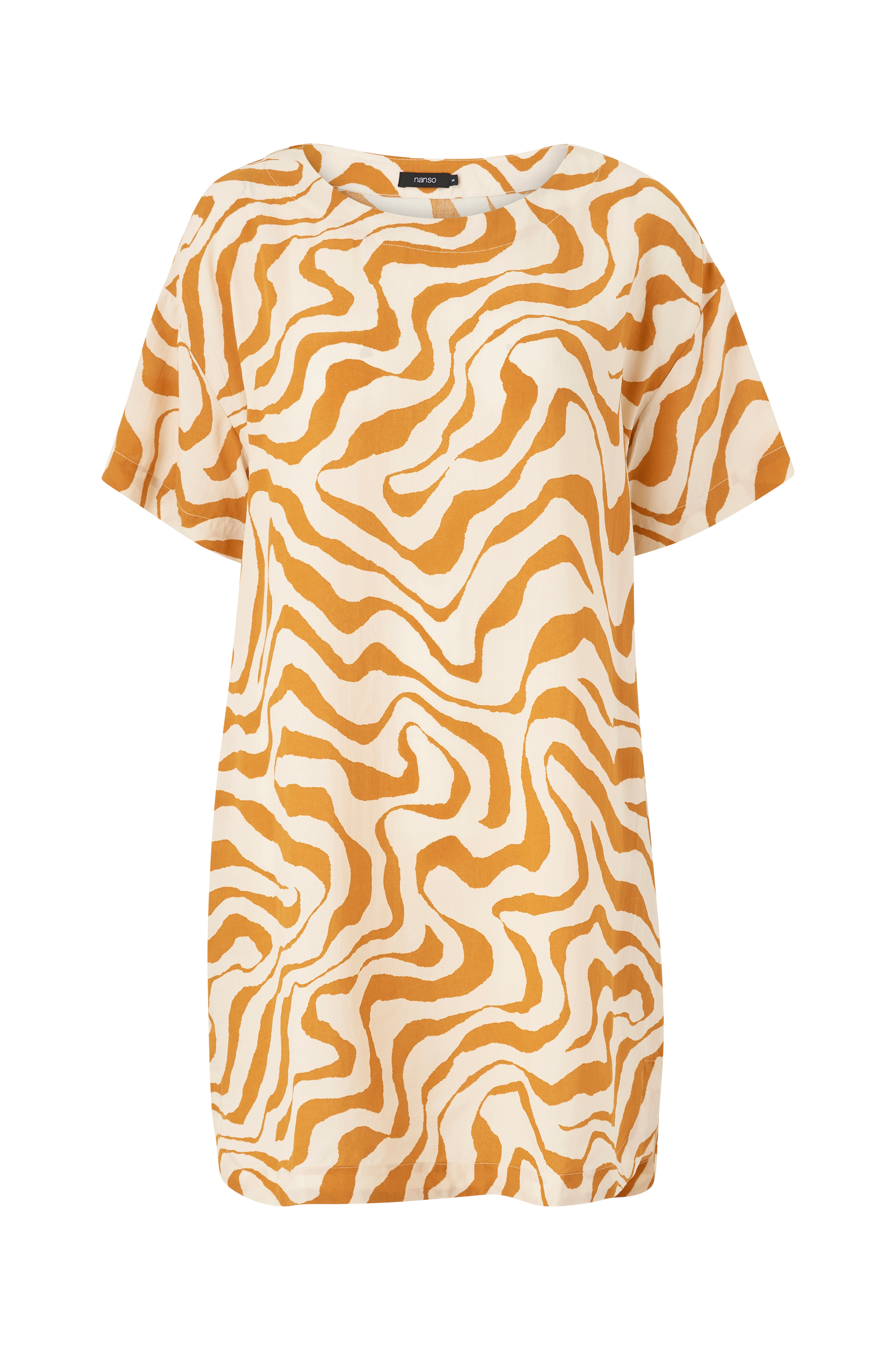• Utsvingt modell • Bred hals • Kort erme • Innfelte sidelommer • Avrundet hem • Lengde: 94 cm i størrelse • Plagget inneholder lyocell, et fornybart materiale hvor produksjonsprosessen skjer i et lukket system der alle ressurser gjenvinnes og brukes på nytt. Det har lavere miljøpåvirkning, og krever mindre mengder vann enn bomull.