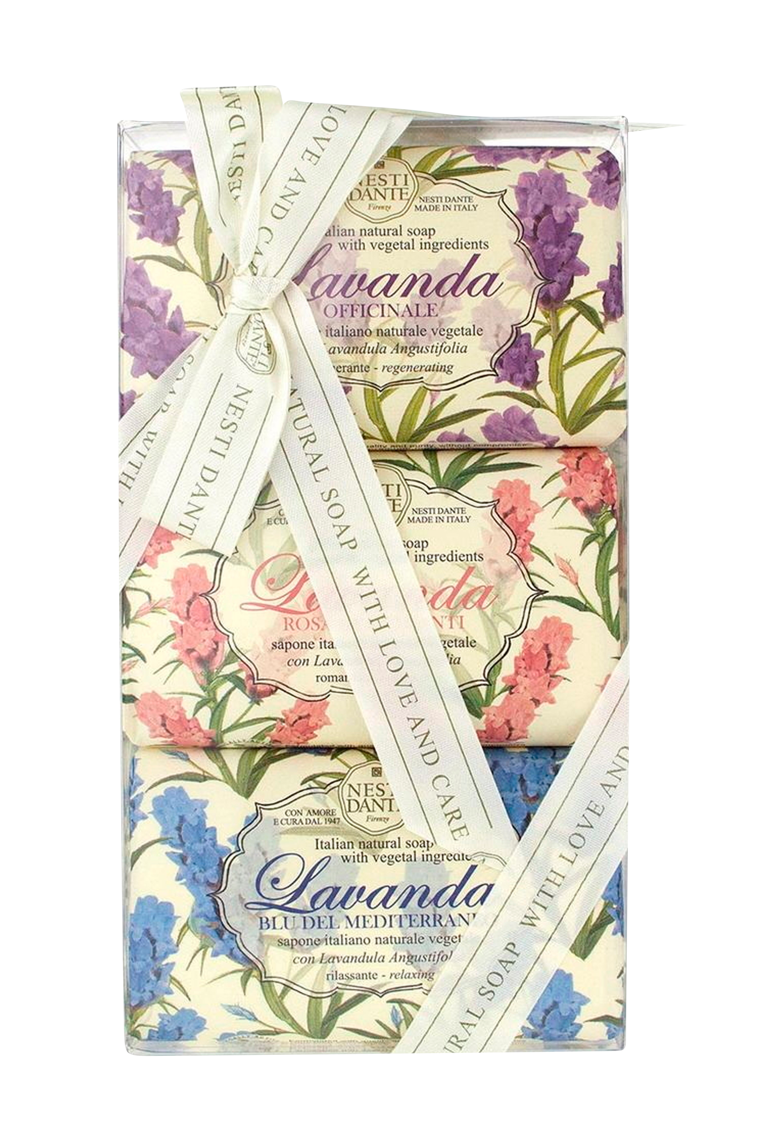 Gaveeske med tre såper med fin innpakking.3 x 150 gram.