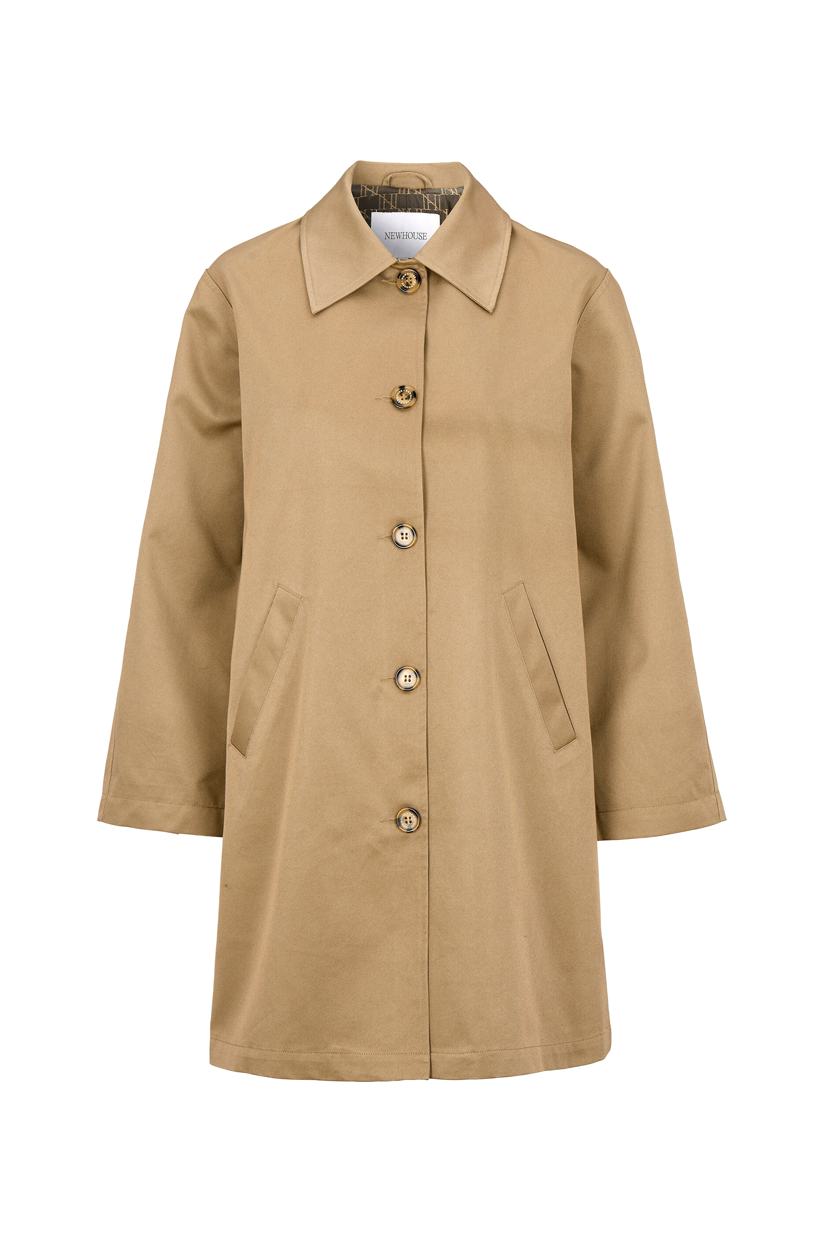 En moderne versjon av en klassisk bilfrakk. Løs passform med normalt erme foran og raglanerm bak. Dekorative boksplisseringer på ryggen.