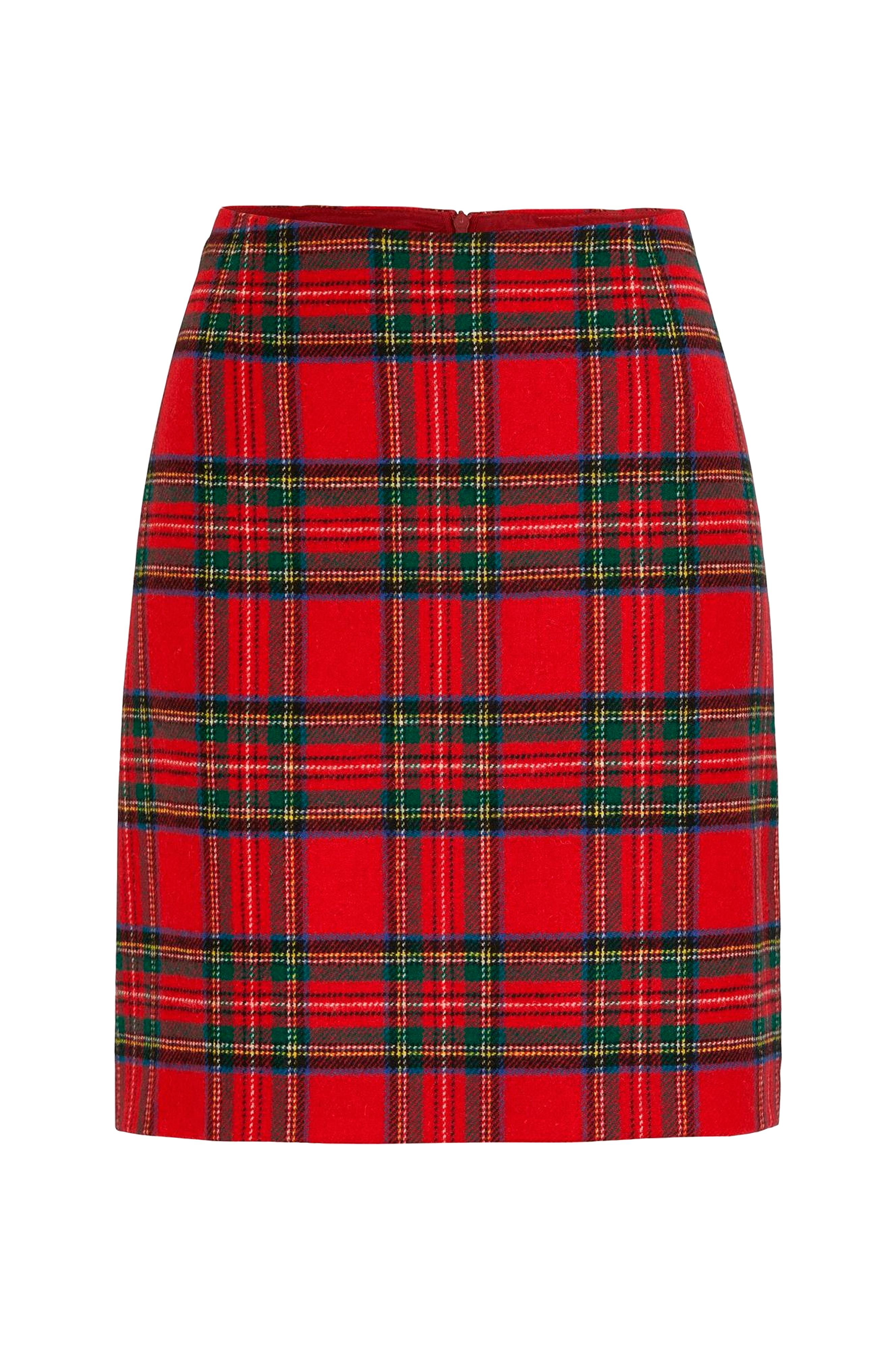 Rett, figursydd skjørt i merinoull som lukkes med glidelås bak. Det vakre rutemønsteret finnes i to farger, begge like fine å matche med en myk strikkegenser eller cardigan.
