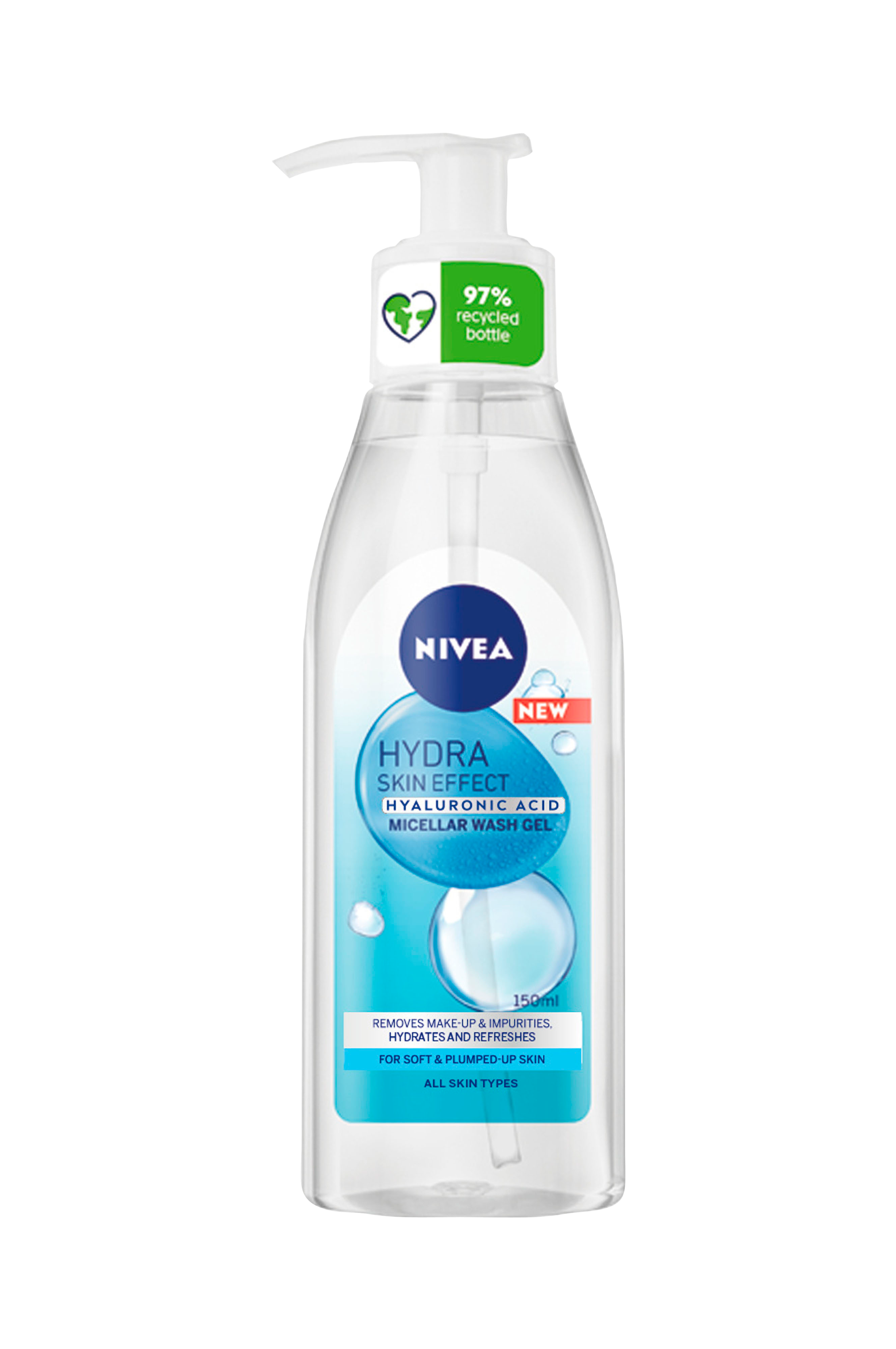Nivea Hydra Skin Effect Micellar Face Wash er en fuktighetsgivende rensegele for ansiktet. Formelen er beriket med ren hyaluronsyre [H] og renser huden mildt, men effektivt. Ansiktsrensen fjerner sminke og urenheter uten å tørke ut huden, og etterlater huden myk og ren. Passer alle hudtyper. Dermatologisk testet.